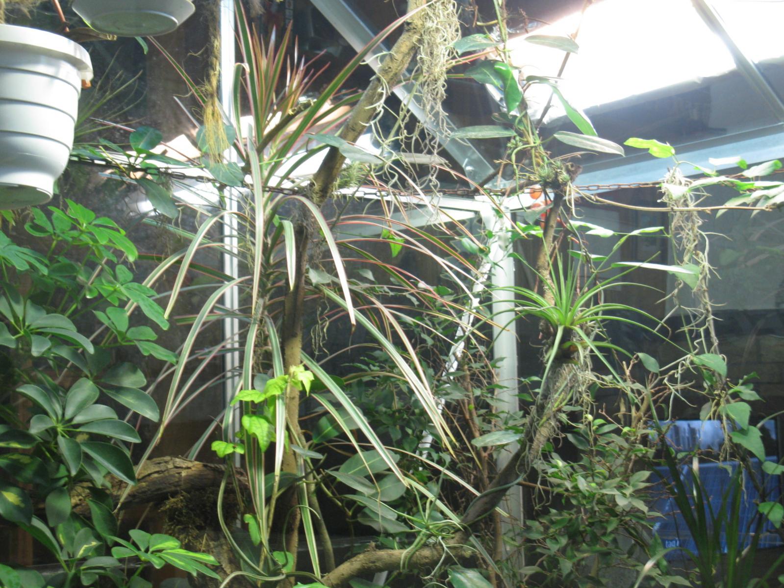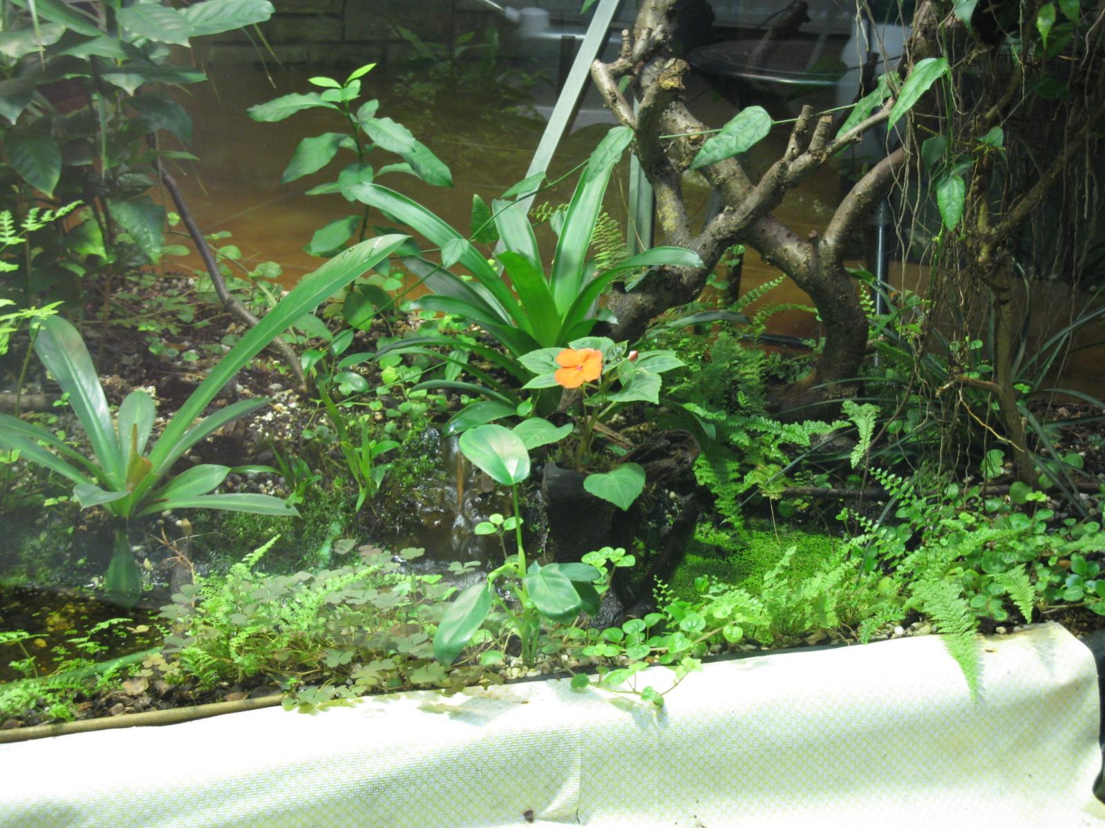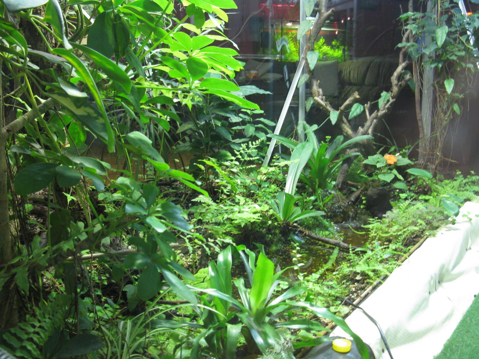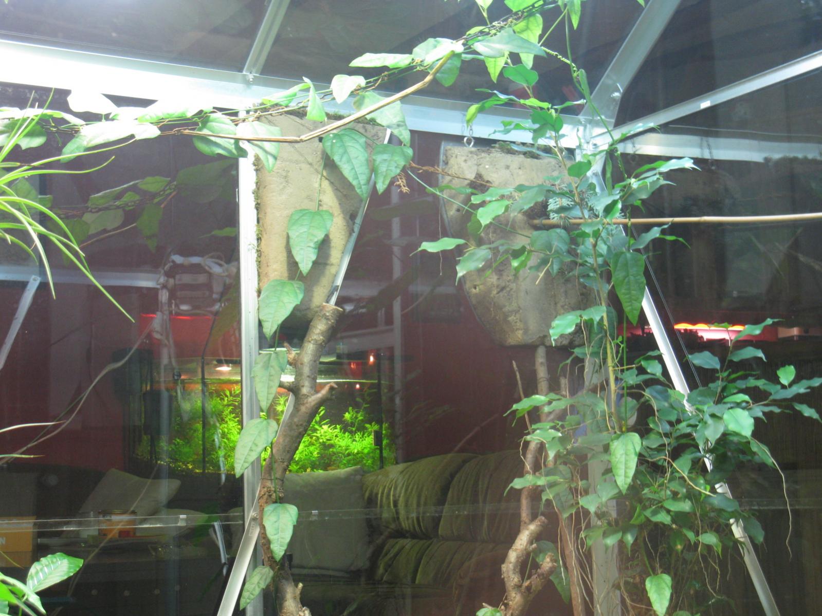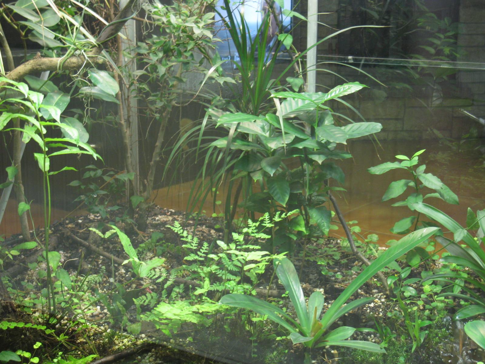 Danke Dadieda. Wieviele Stunden? Na etwa 13 Stunden am Tag sind die Lampen an. Nachts ist natürlich fast alles aus. Trotzdem kühlt das Terrarium nicht aus, die Temperaturen sinken jetzt im Winter auf etwa 18 bis 20 Grad. Also noch fast tropische Verhältnisse.