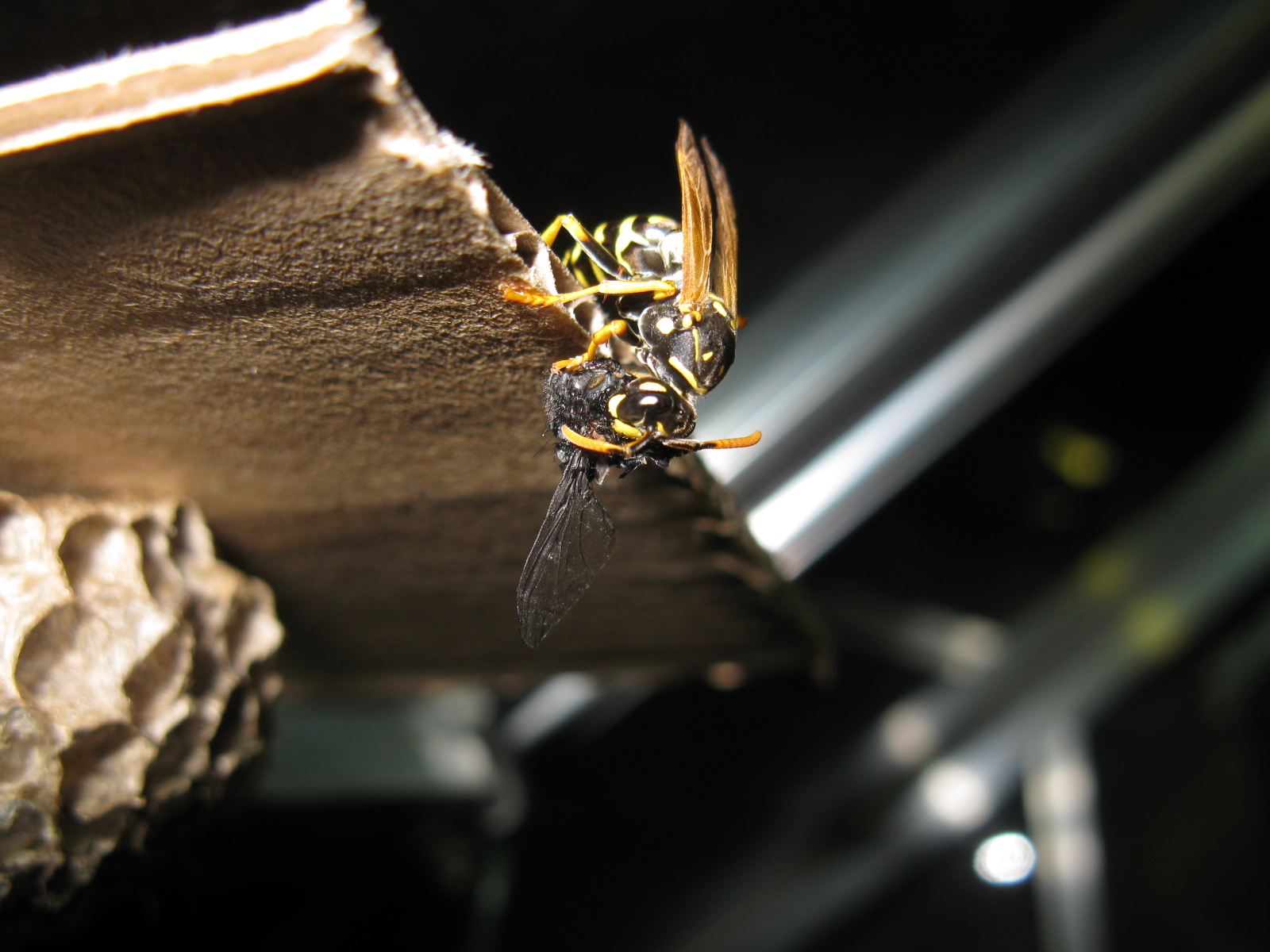 @Ameise1: Du meinst sicher diese tropische Wespe, die ich damals hier fotografierte. Sie lebte etwa 5 Monate hier, sie starb im August. Das ist ein für Wespenarbeiterinnen biblisches Alter, normalerweise leben solche Arbeiterinnen, zumindest die der heim. Echten Wespen als Imagines nur etwa zwei Wochen. Bei solchen trop. Polybia oder Polistes (...das weiss ich nicht genau, welcher Art sie angehörte...) kann die Lebensspanne sicher länger sein, aber 5 Monate sind in jedem Fall ordentlich. Das war auch nur deswegen möglich, weil die Wespe im Prinzip nichts zu tun hatte, ausser sich einen schönen Tag zu machen..