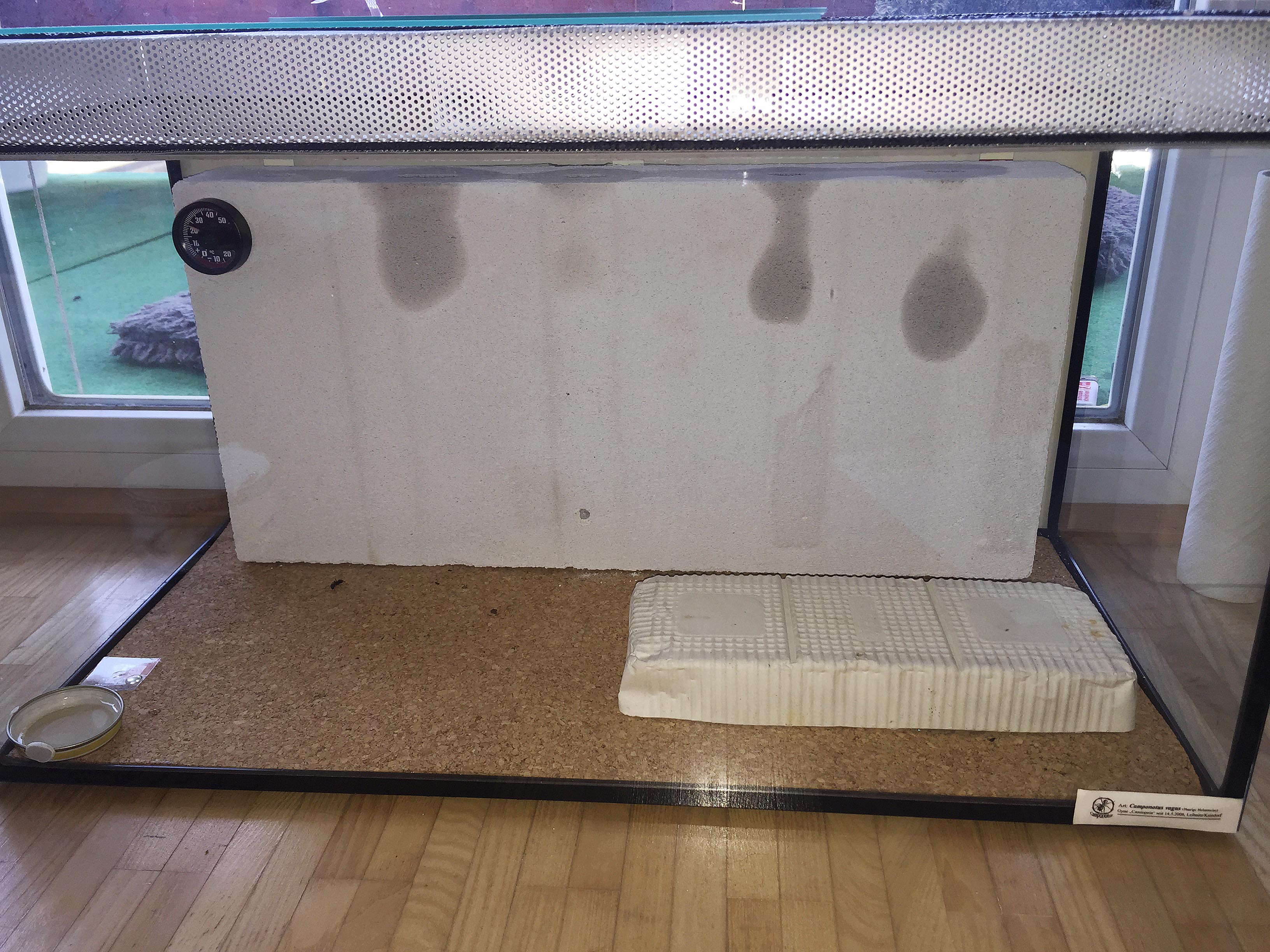 20. April 2016 - Gegen Abend kann ich nicht anders und entferne kurz die schwarze Kartonabdeckung (mittels Magneten befestigt) hinten am Formikarium. Die