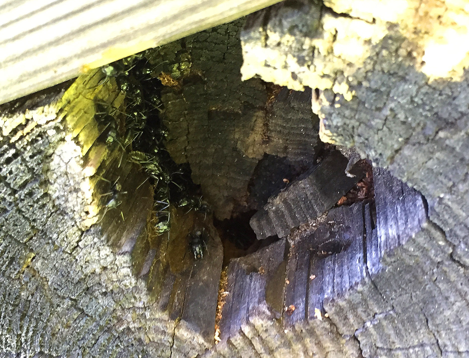 Am 21. Mai wäre fast ideales Wetter gewesen und ich konnte bei meinem Camponotus vagus Lieblingsplatz an einer Holzbrücke ein Männchen und ein Weibchen rausspähen sehen.