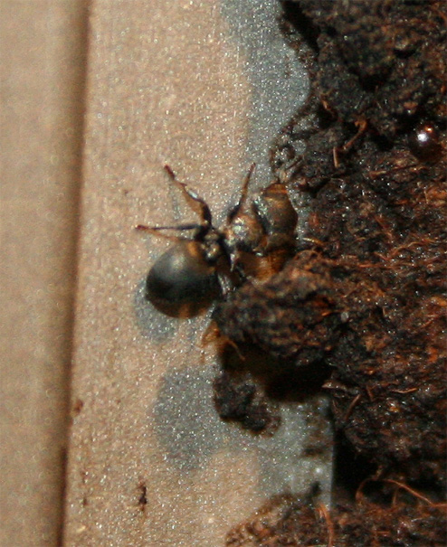 Die Aktivität ist mittlerweile bei allen Arten höher, daran sieht man dass die Kolonien wachsen. Die Pachycondyla apicalis sind natürlich am aktivsten, da sie auch mit der größten Kolonie eingesiedelt wurden. Sie haben auch mittlerweile ein Zweignest gegündet wies scheint. Die meisten Nester habe ich bisher auch aufgespürt, nur das der Gigantiops destructor habe ich noch nicht finden können.