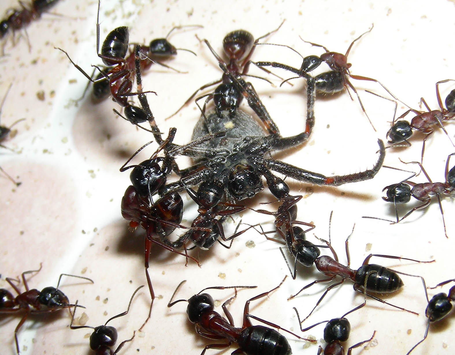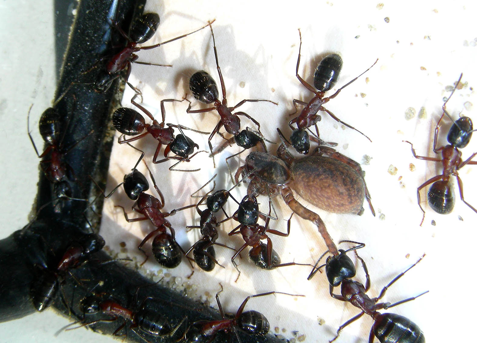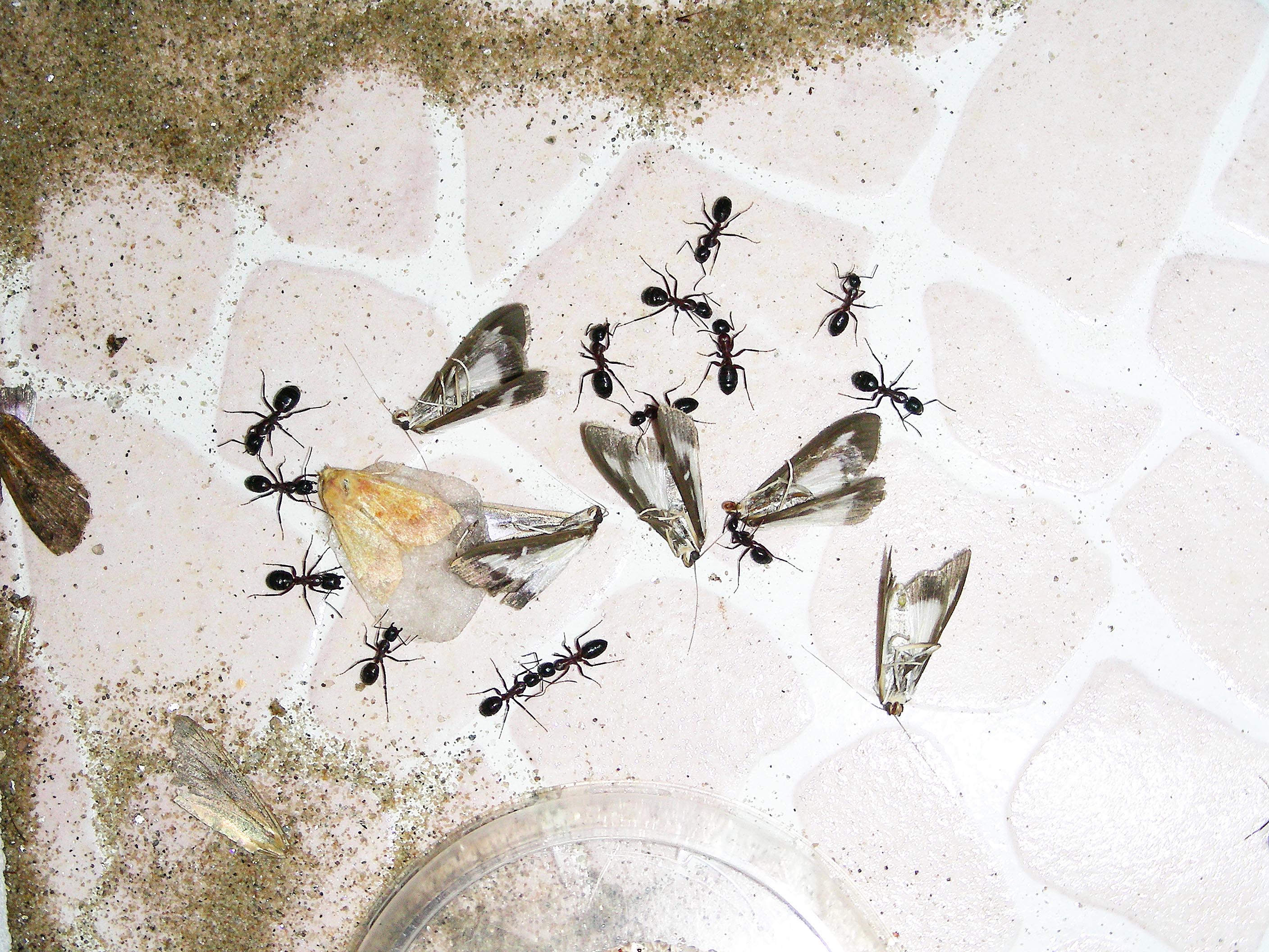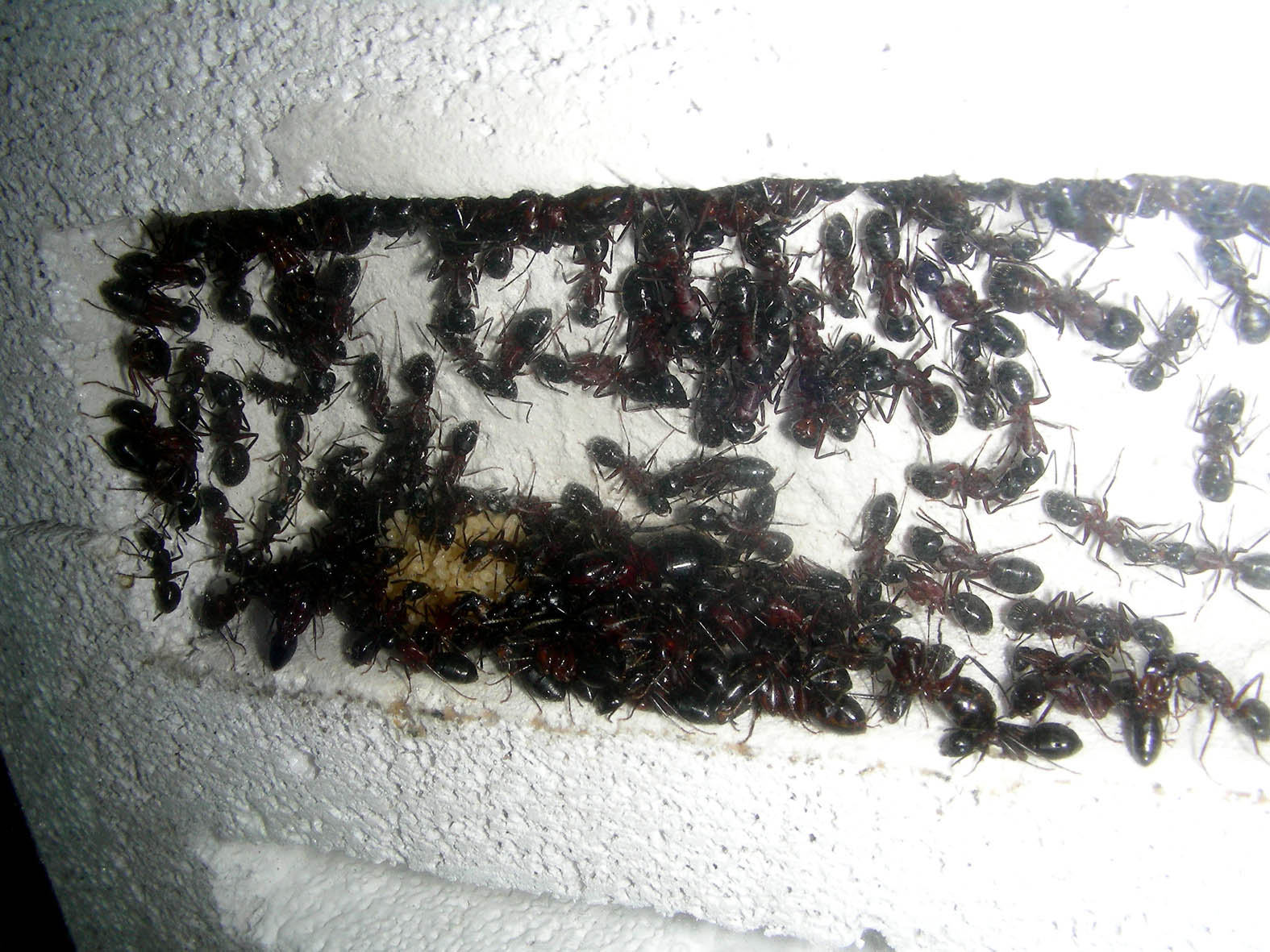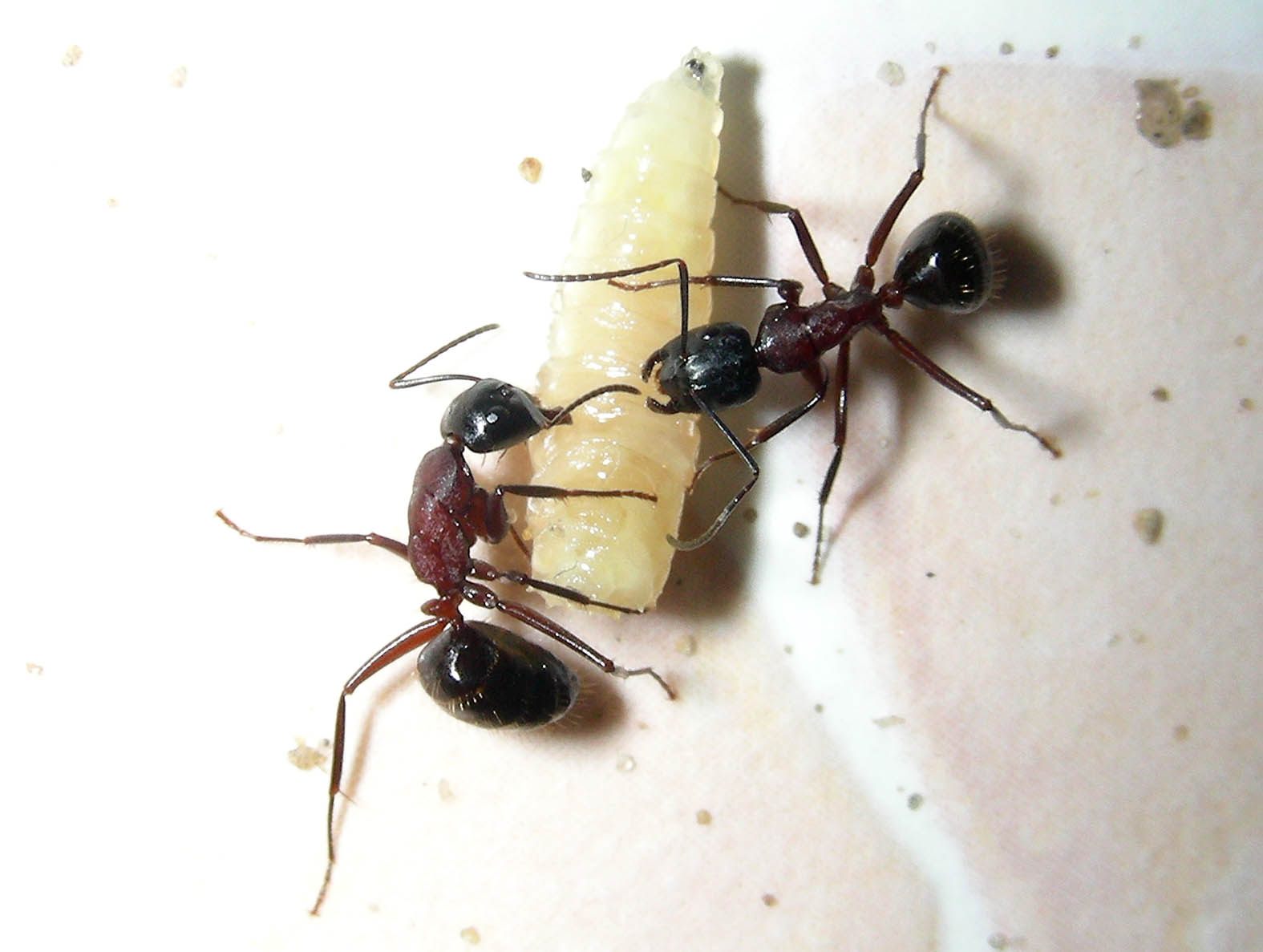 18.03.2011 Gab ihnen in den letzten Tagen immer wieder Insekten hinein die sie alle komplett verwendeten. Heute waren es kleinere Insekten und zwar 90 Essigfliegen - mit denen sie aber bis zum Abend (bis auf ein paar wenige) nichts anfangen konnten - deshalb wieder entfernt. Hoffe ich merke mir das die Camponotus nichts mit den Essigfliegen anfangen können.