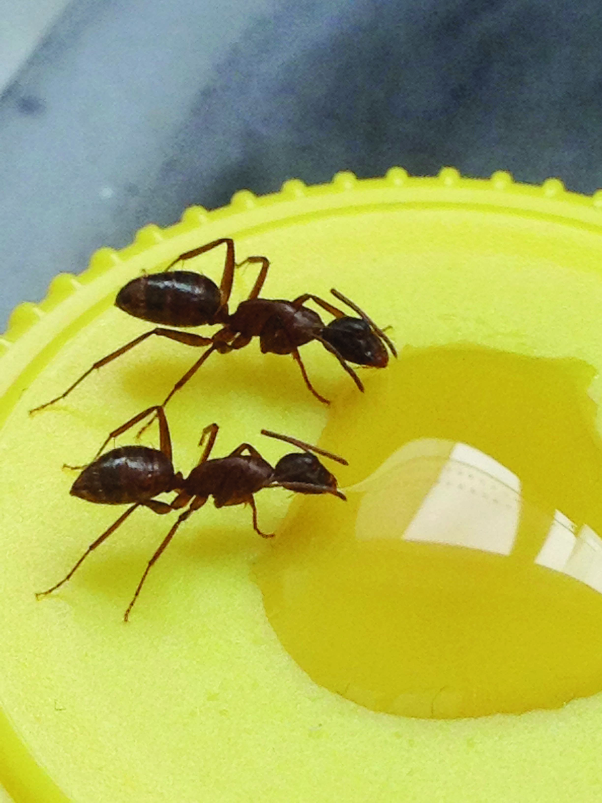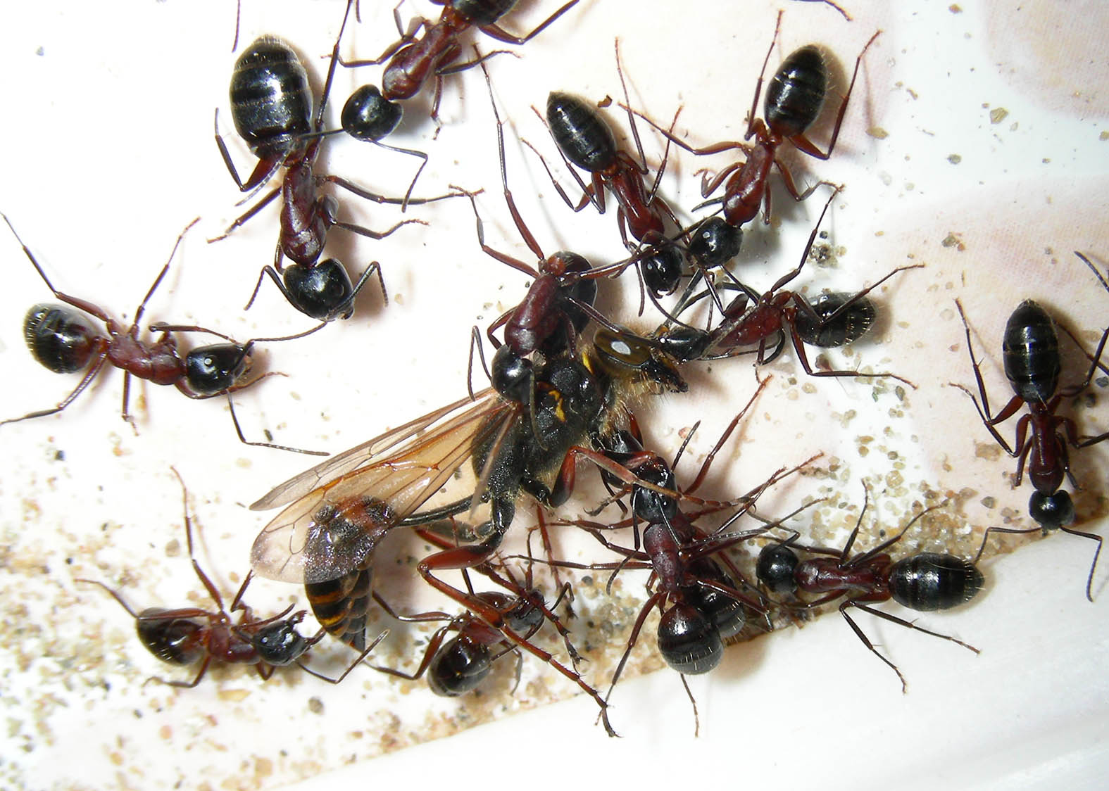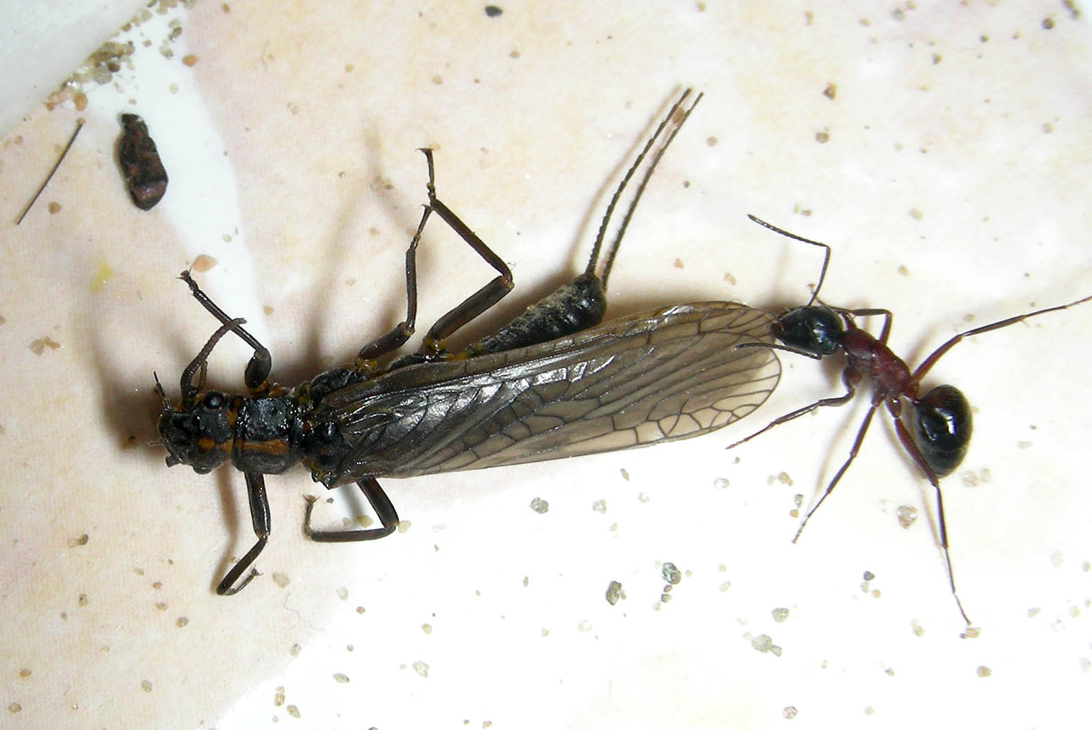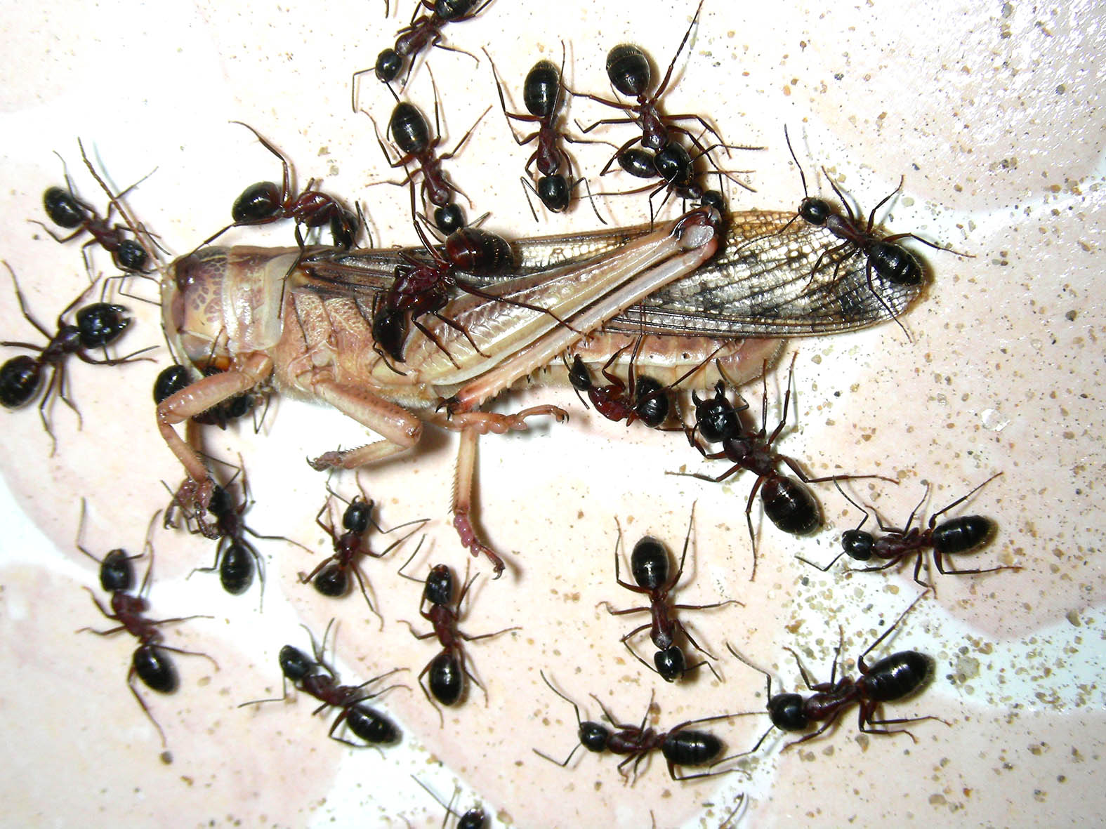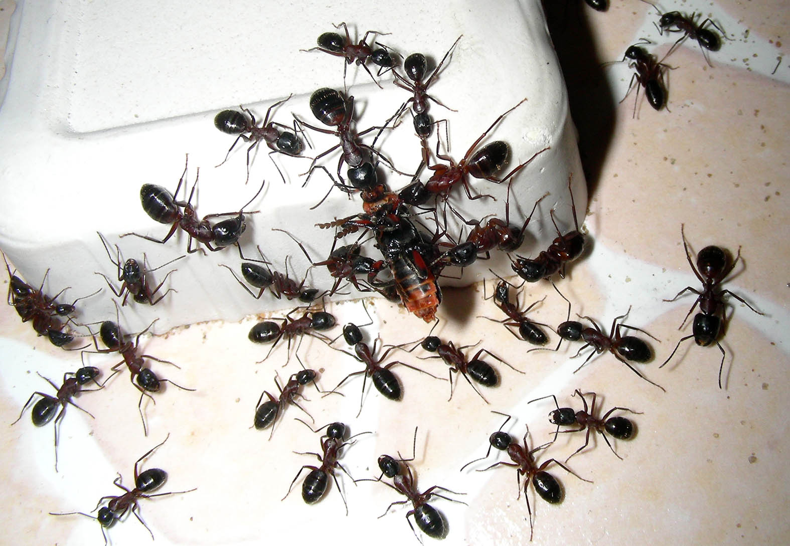 18.03.2011 Gab ihnen in den letzten Tagen immer wieder Insekten hinein die sie alle komplett verwendeten. Heute waren es kleinere Insekten und zwar 90 Essigfliegen - mit denen sie aber bis zum Abend (bis auf ein paar wenige) nichts anfangen konnten - deshalb wieder entfernt. Hoffe ich merke mir das die Camponotus nichts mit den Essigfliegen anfangen können.