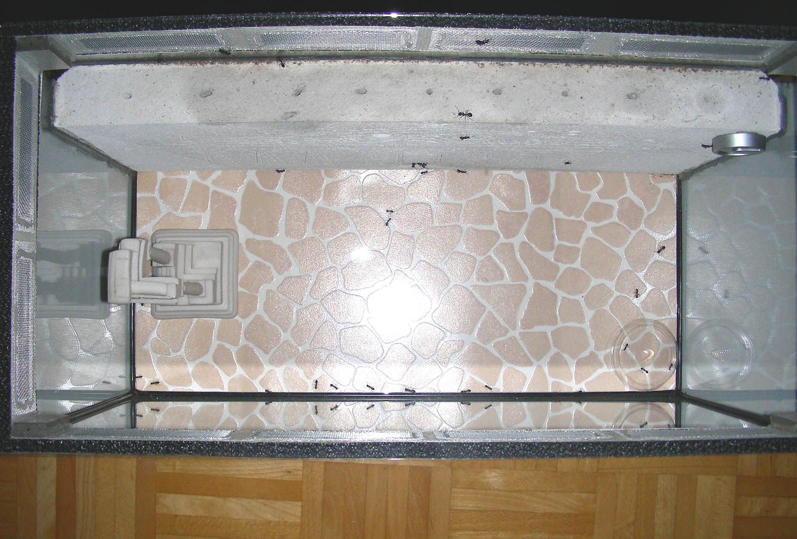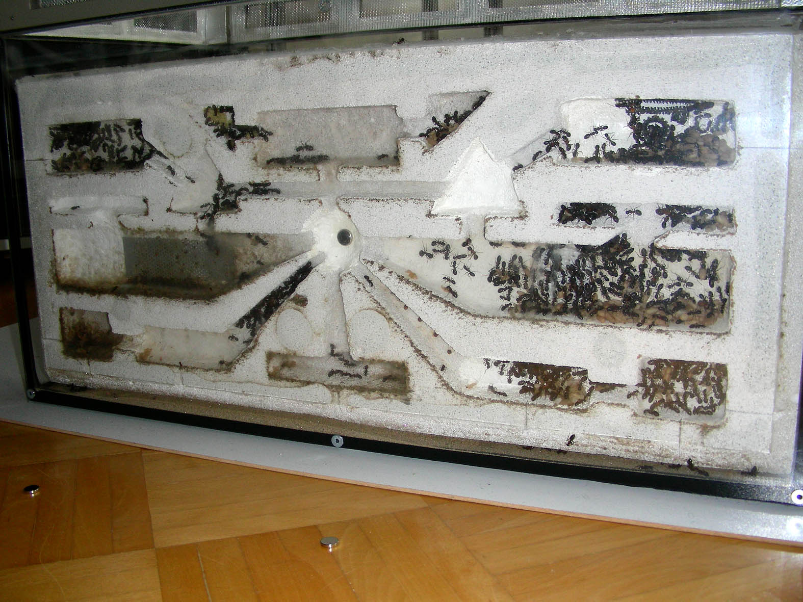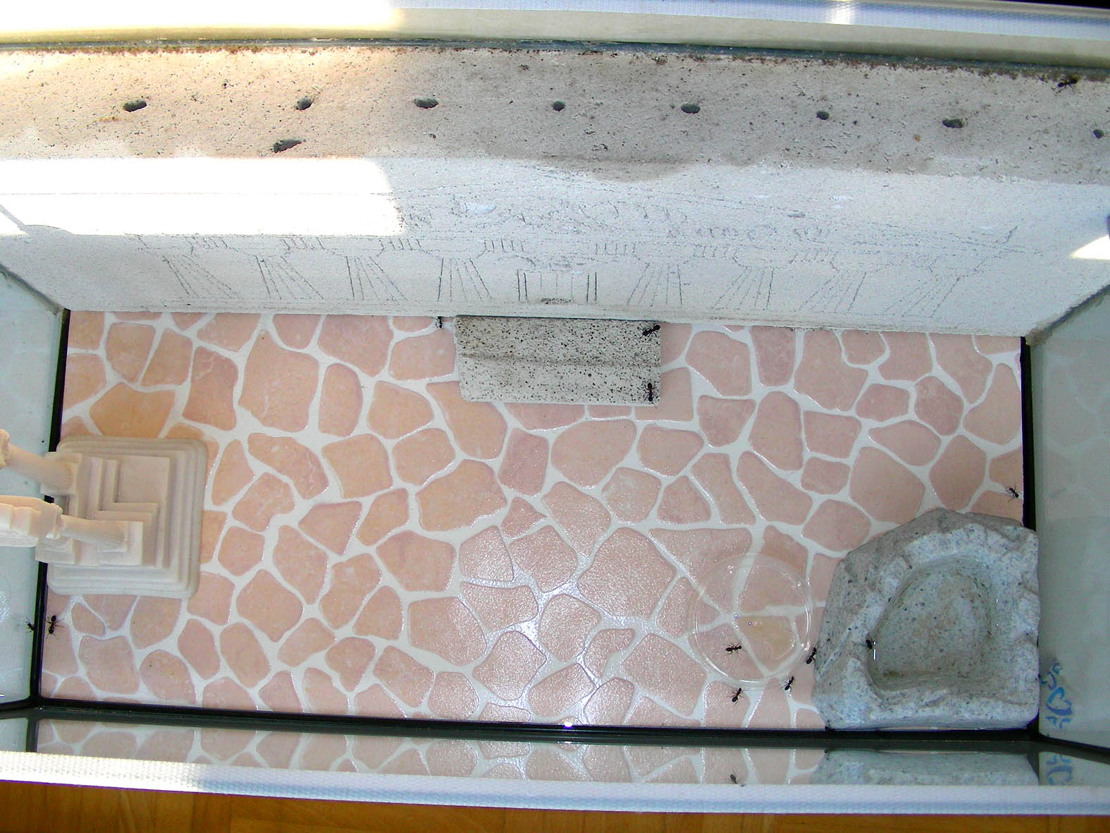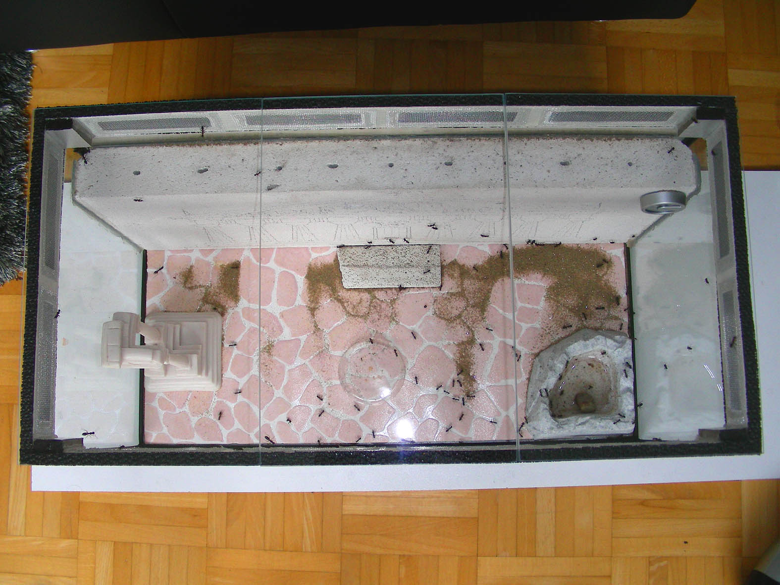 02.01.2011 Das erste Mal im neuen Jahr wieder das Formikarium ordentlich nachgefeuchtet. Auch wieder unabsichtlich einen Raum etwas mit Wasser betröpfelt. Auch die Arena vor dem YTONG gleich angefeuchtet und auch die Watte dort in Wasser getränkt.