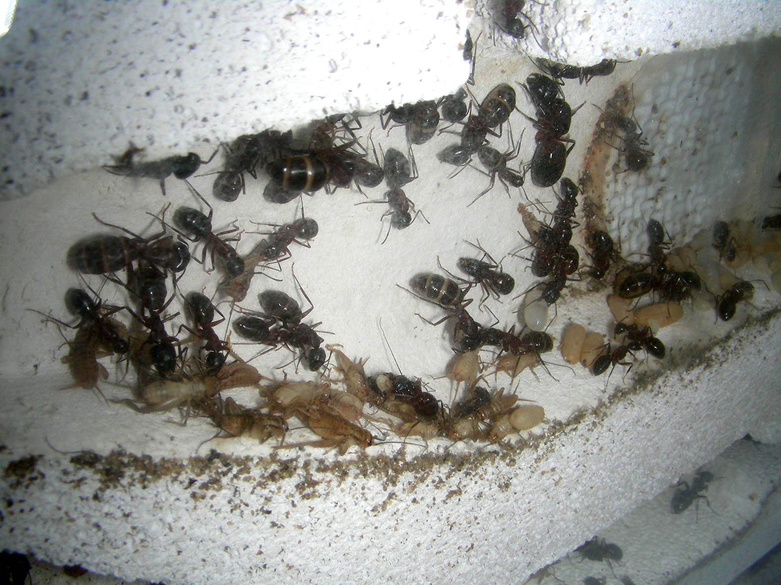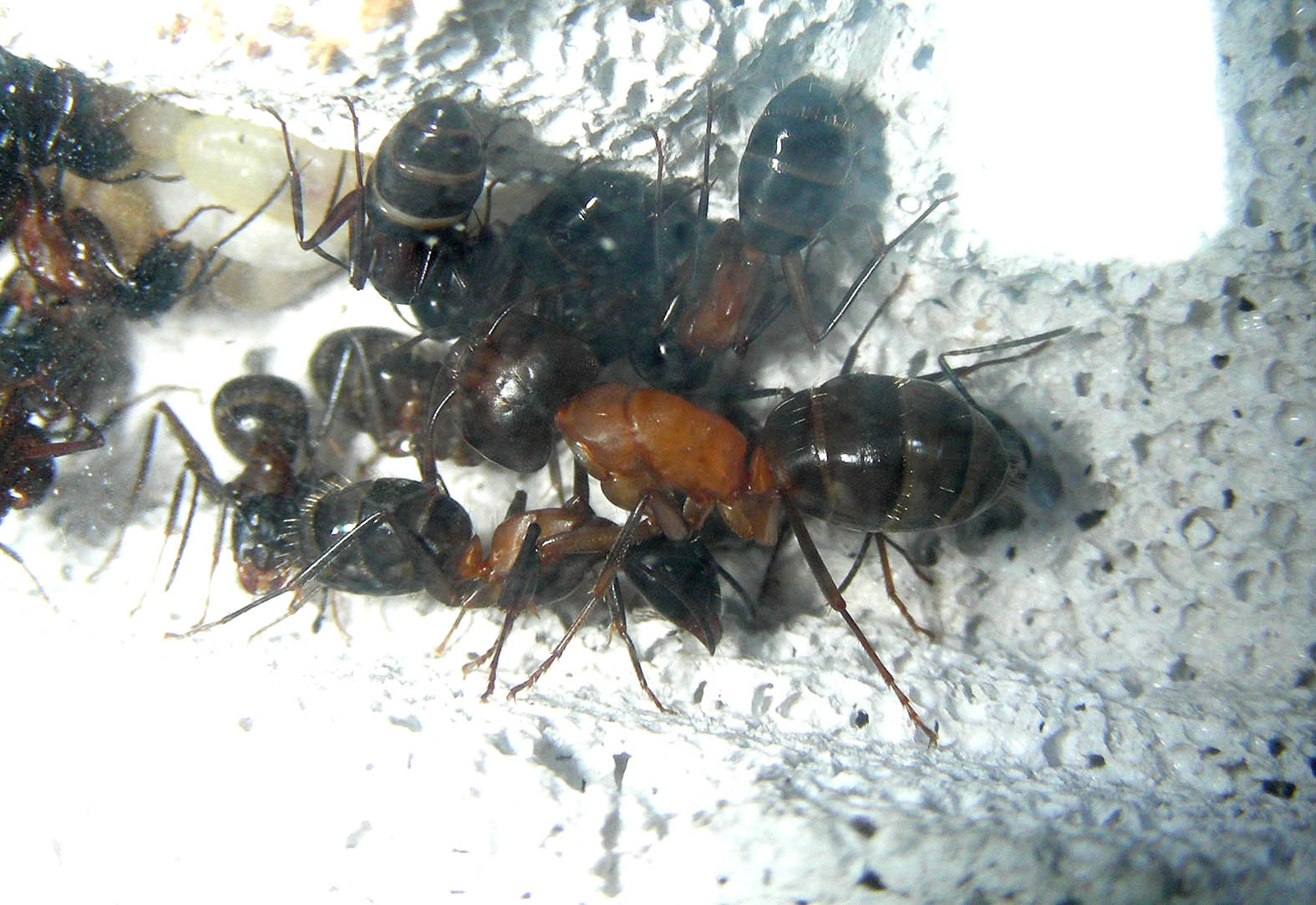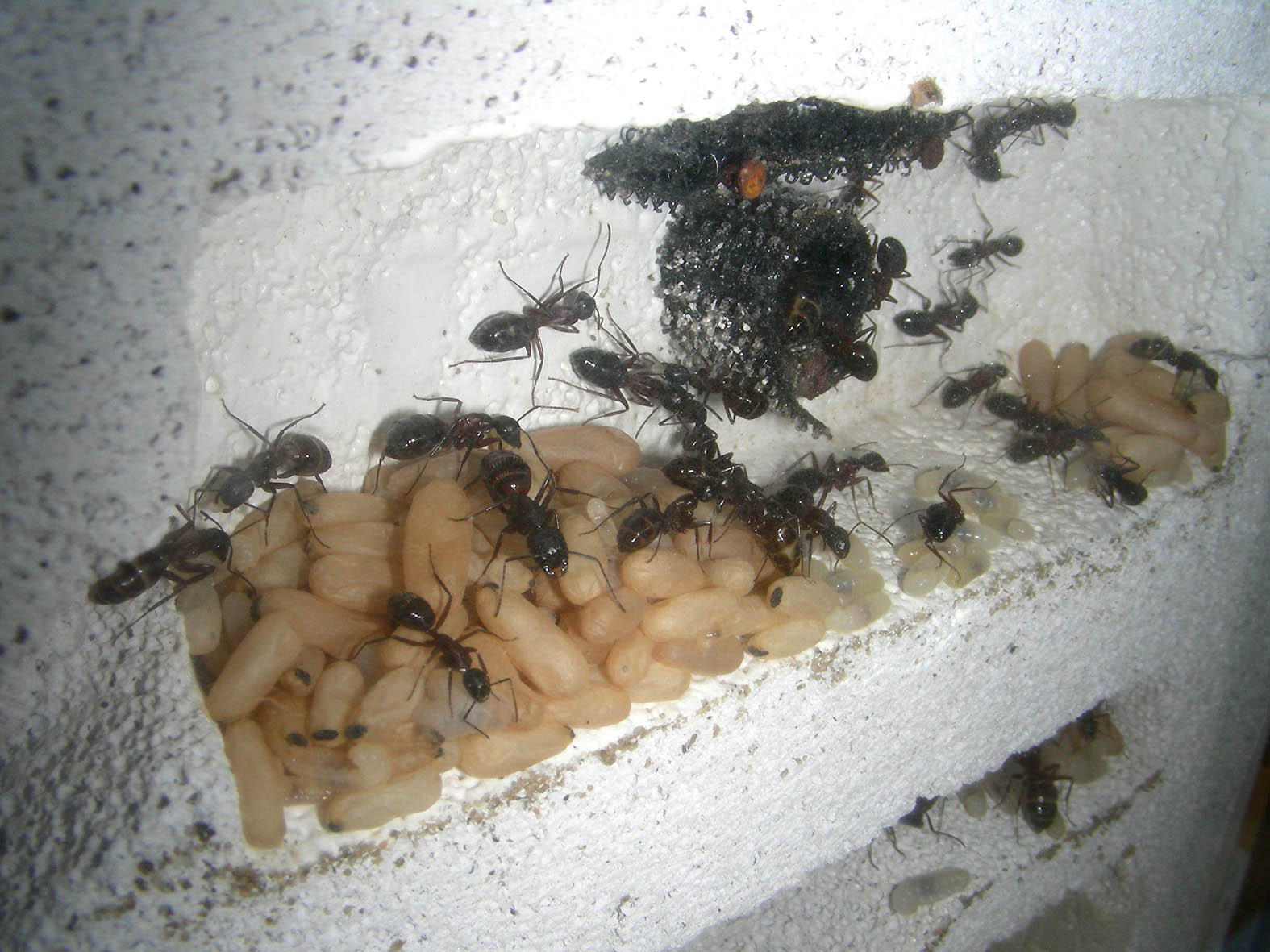 Beobachtung: Ich sah hin und wieder das eine Arbeiterin getötet wurde von den eigenen - das könnte sicher von dem Silikon her kommen mit dem ich den YTONG befestigt hatte und der schon meine Pheidole aggressiv macht - nur eben hier nicht ganz so tragisch wenn hin und wieder eine Arbeiterin exekutiert wird von den Eigenen.
