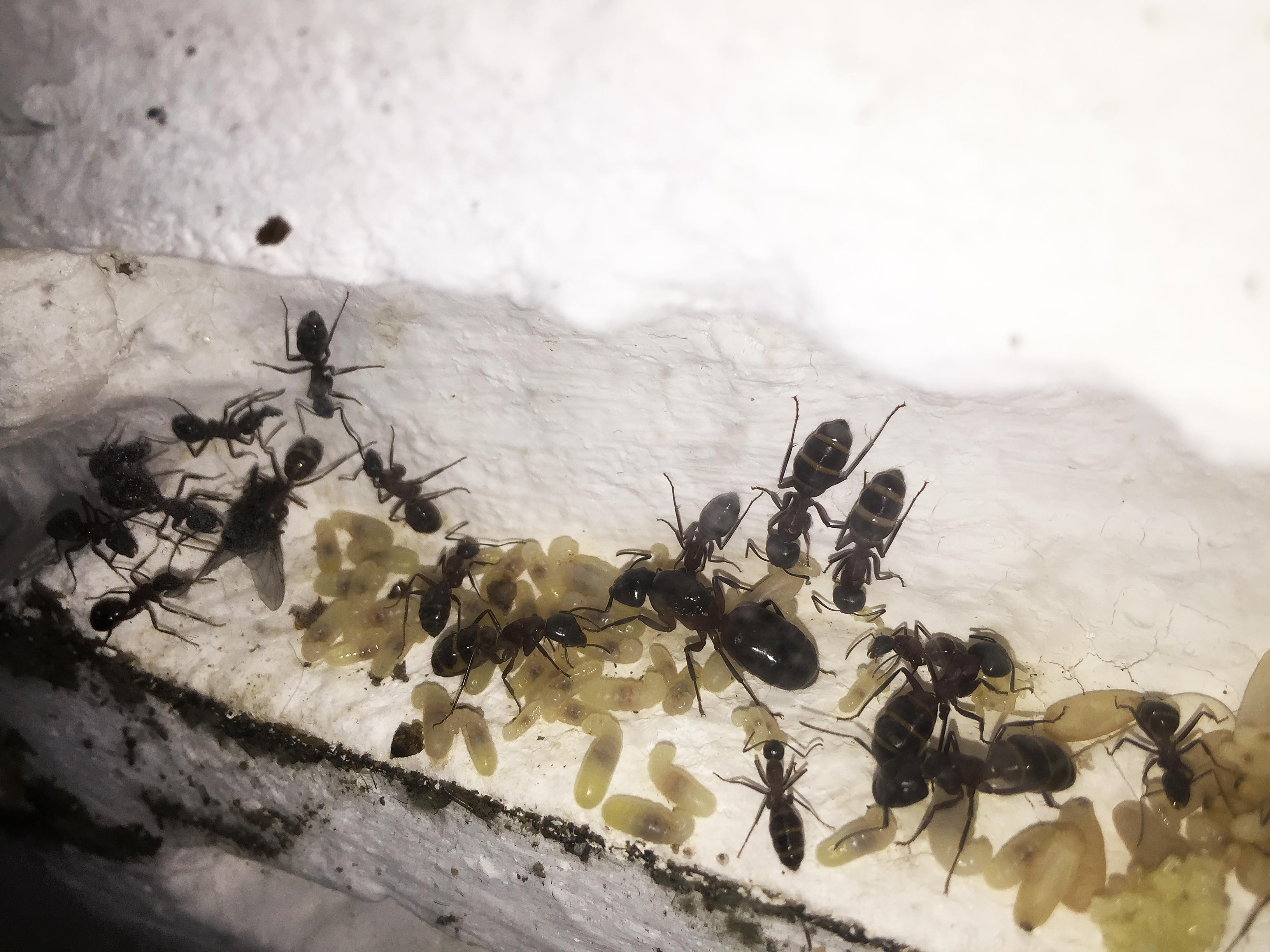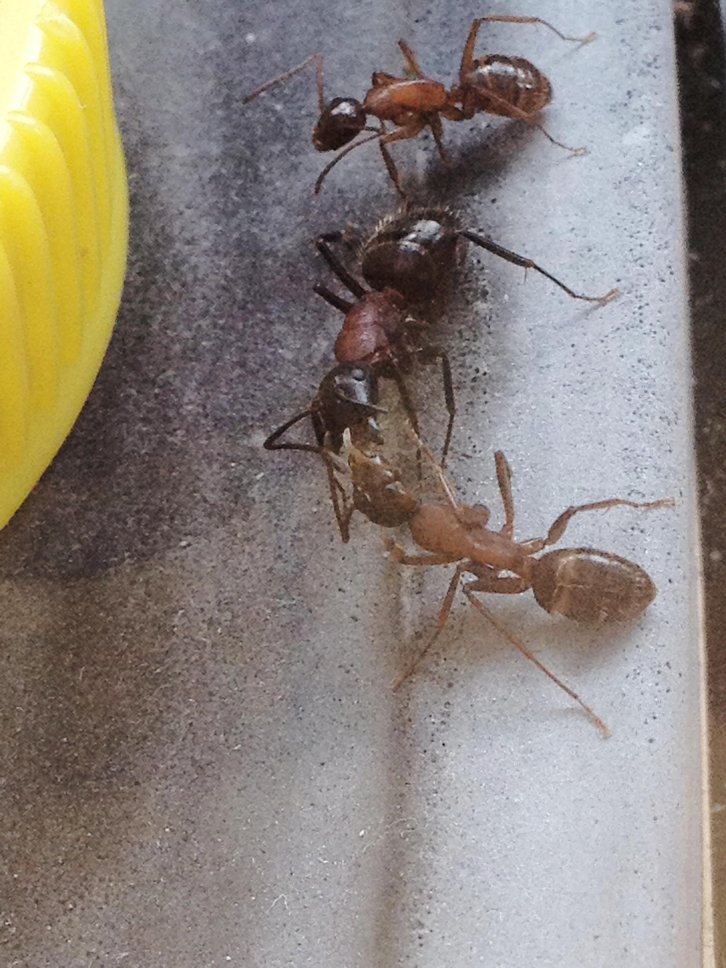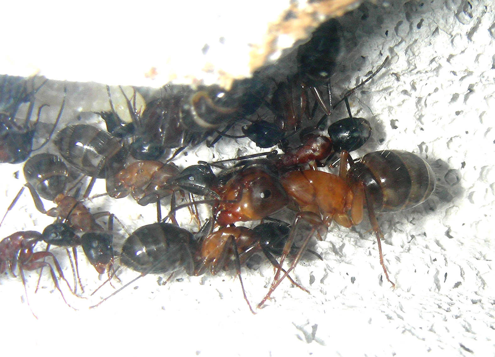 Beobachtung: Ich sah hin und wieder das eine Arbeiterin getötet wurde von den eigenen - das könnte sicher von dem Silikon her kommen mit dem ich den YTONG befestigt hatte und der schon meine Pheidole aggressiv macht - nur eben hier nicht ganz so tragisch wenn hin und wieder eine Arbeiterin exekutiert wird von den Eigenen.
