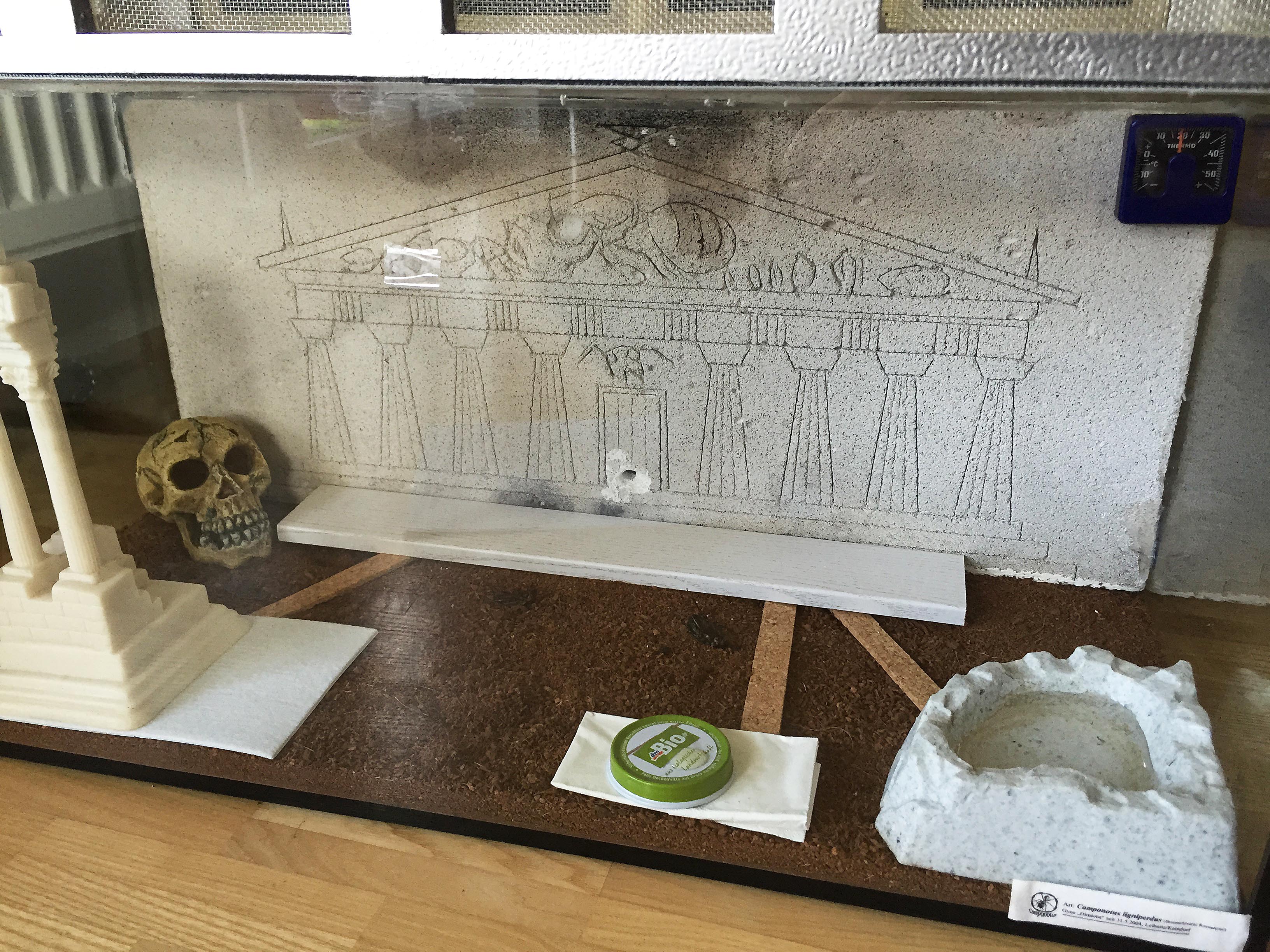 24.01.2011 Wieder den YTONG und die Umgebung angefeuchtet. Hat 2°C im Formikarium bei -3°C Aussentemp.
