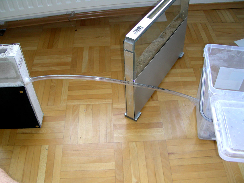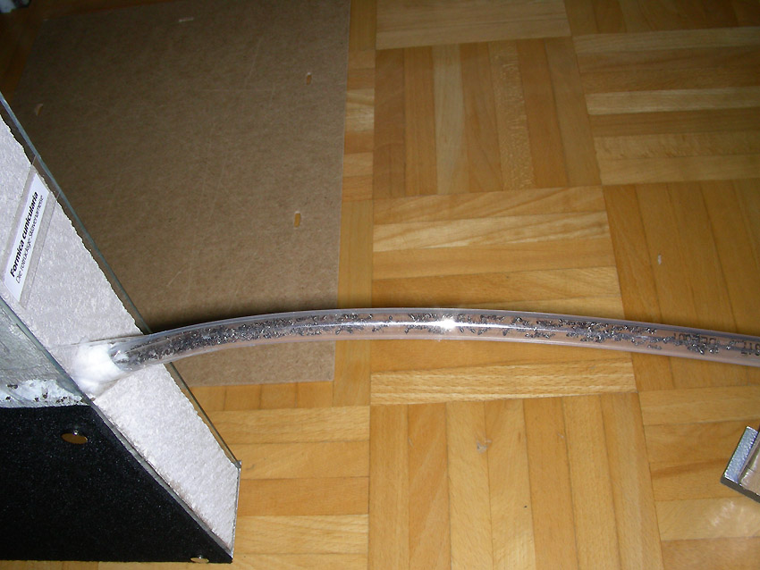 Das unterband ich bis jetzt ganz gut indem ich diese komplett mit Uhu-Alleskleber beschmierte und alles mit einer harten Schicht Uhu überzogen habe - durch den sie sich nicht mehr beißen können. Der Berg an weißen Uhu-Klebepads Teilchen wurde aber trotzdem von Tag zu Tag größer und werd wohl doch bald was anderes als Schlauch-Formikarium-Abdichtung verwenden müssen. Alle Arten von Insekten wurden bis jetzt einwandfrei bis zum Formikarium durch den Schlauch transportiert und dies auch durch größere Steigungen.