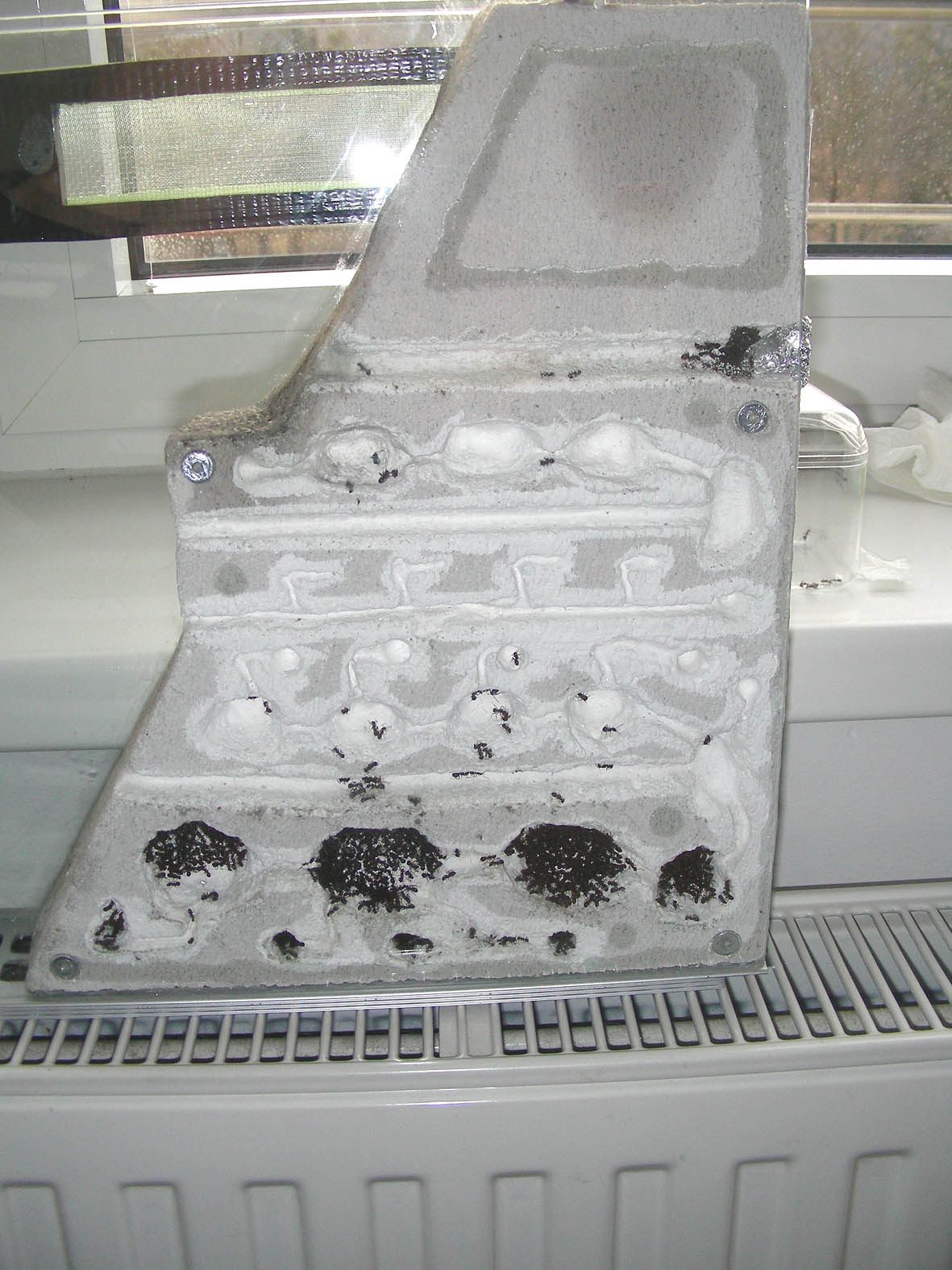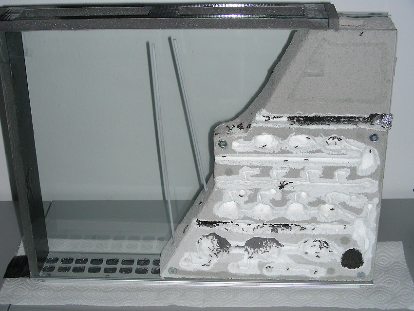 6.10.2010 Dieses 3. Formikarium hab ich deshalb gebaut da Slave I und II beide Sandformikarien waren und nur wenig Einsicht boten was die Arbeiter anbelangte auch wenn sie wohl am optimalsten für Formica cunicularia waren was deren Zahl von 1345 Arbeitern vor dem Umsiedeln beweist.