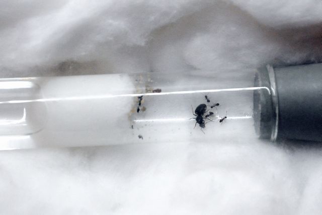 Ich habe mich bemüht etwas Grün in das Becken zu bringen. Diese Crassula ovata habe ich damals aus einem einzelnen Blatt gezogen, die Pflanze wurde nie gedüngt und eignet sich sehr gut für die Beckengestaltung dieser Ameisenart. Ein Vorteil ist natürlich, dass diese Sukkulenten Wasserspeichern und somit nur selten gegossen werden müssen. Das erfolgt wenn nötig über einen Schlauch der mit Watte verstopft ist:
