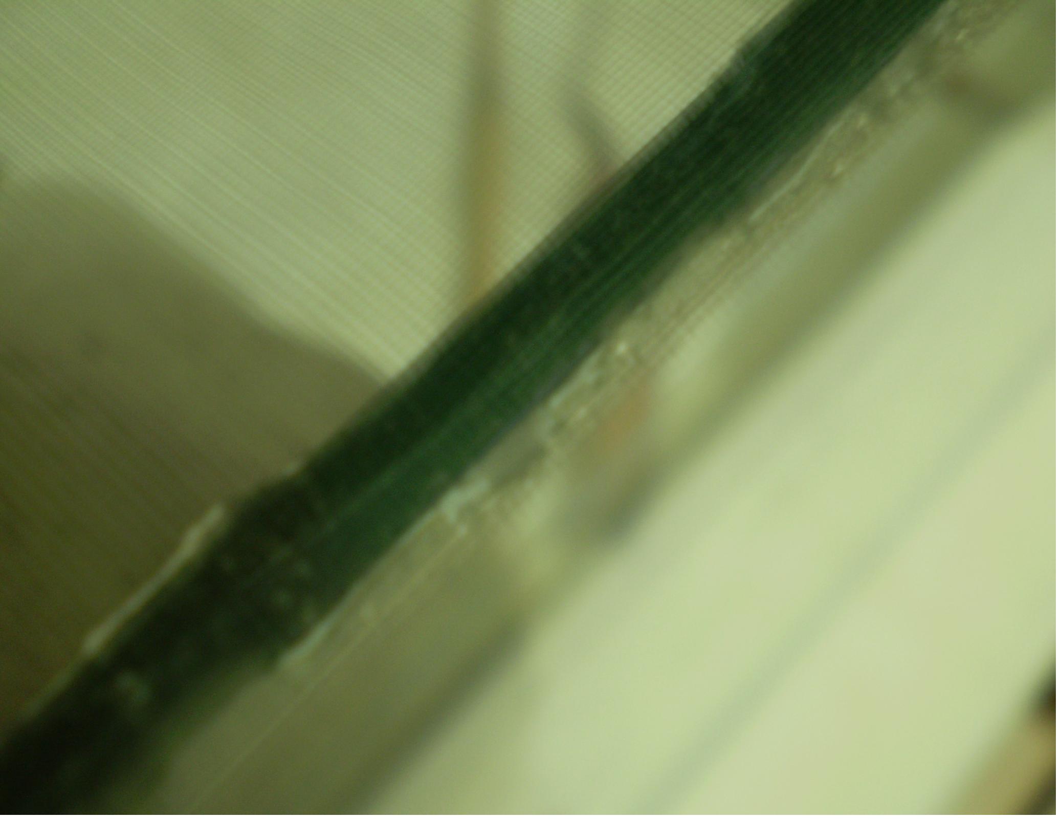 Musste mit dem ptfe echt kämpfen : ) habe es dann verdünnt mit Wasser , alles dick aufgetragen und ablaufen lassen, trocknen und schon ein hauch dünner Streifen. ( bild unten)