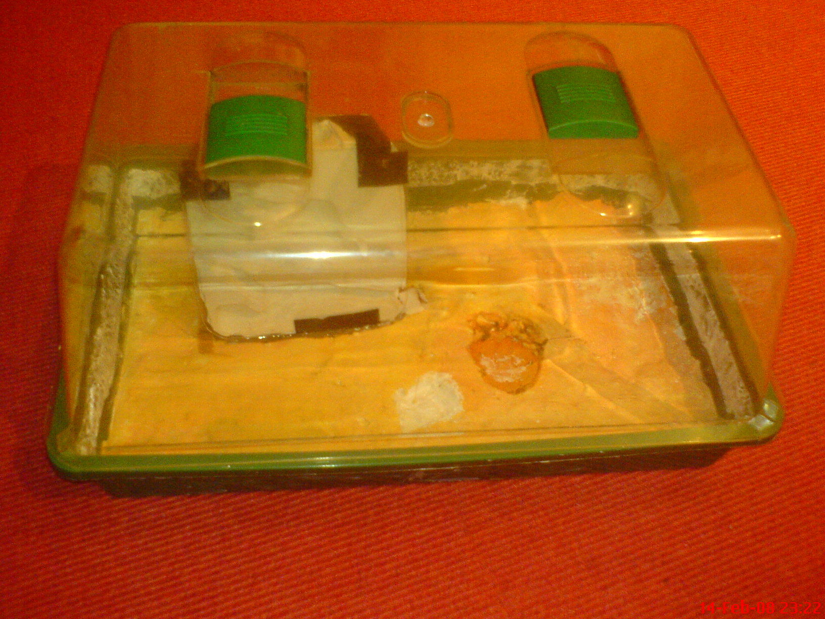 Rote Folie Hygrometer und Thermometer kommen noch, sowie Futternäpfe und