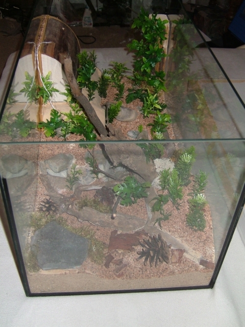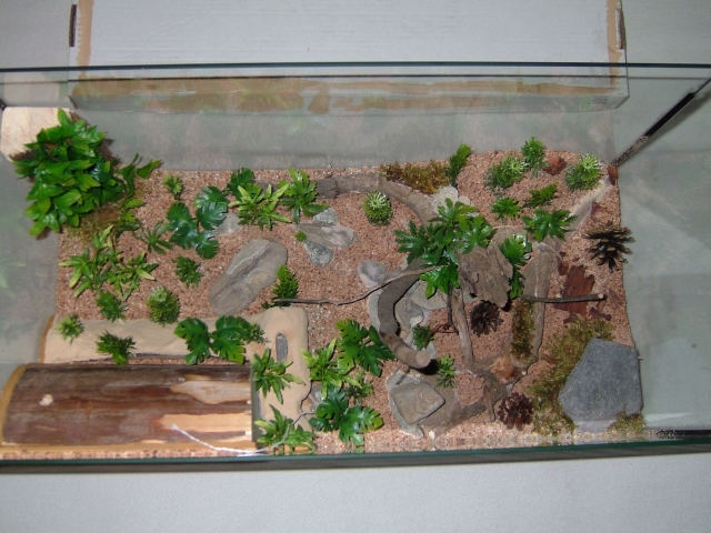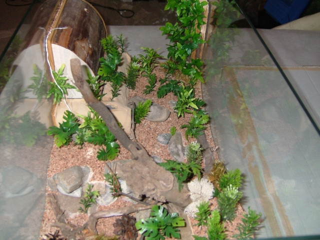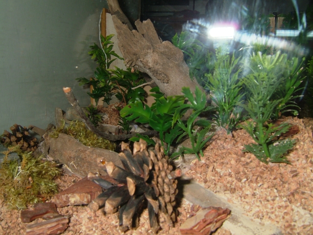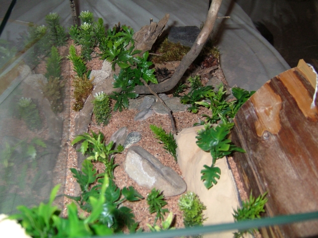 Abschließend noch zwei lose Steine, einer davon vor dem auf Bodenhöhe liegenden Ytongzugang gestellt, damit dieser einen etwas geschützteren Eindruck macht (an der Stelle habe ich auch absichtlich die Pflanzen entsprechend ähnlich angeordnet), noch drei Tannenzapfen und etwas lose Holzstückchen verteilt und fertig war das dieser für mich bislang längst Bau eines Formicariums.