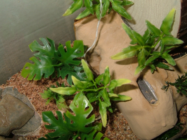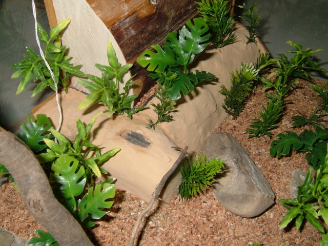 Damit das Nest nicht als kahler Klotz im Formicarium steht, klebte ich noch ein paar Plastikpflanzen auf und brachte, wie gewohnt, als Lückenfüller und zum Abdunkeln die beiden Außenscheiben des Nests Türdichtband an.
