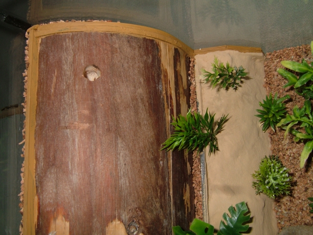 Als nächstes das Nest eingesetzt und den kleinen Spalt zw. Nest und Bodenplatte mit Sand und Korkbrösel verschlossen.