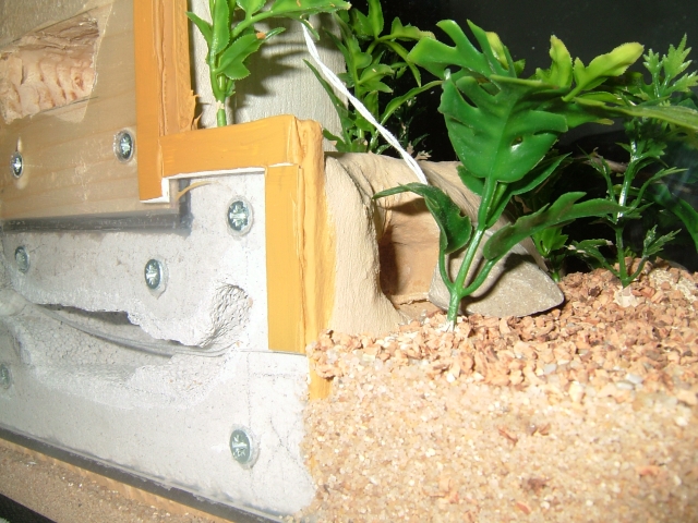 Nach dem austrocknen, kam dann nochmals eine Schicht darüber, auf die ich dann feinen und groben Aquariumsand, sowie Korkbrösel darüber streute.