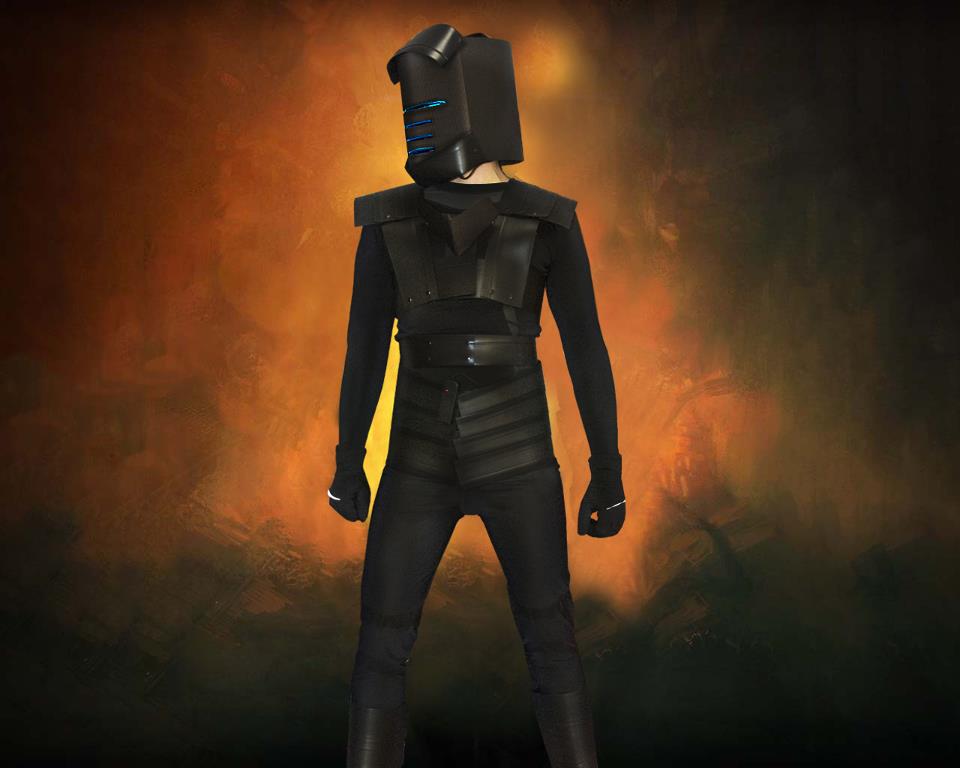 Den Helm hatte ich innen auch wieder ordentlich verkleidet und auch der Einschaltknopf fĂŒr die Lichter war fĂŒr den Helm innen verlegt sowie fĂŒr den RĂŒcken an der Frontseite angebracht. Die Ableseeinheit unter dem Helm vorne leuchtete auch innen dank fluoreszierendem Klebeband.