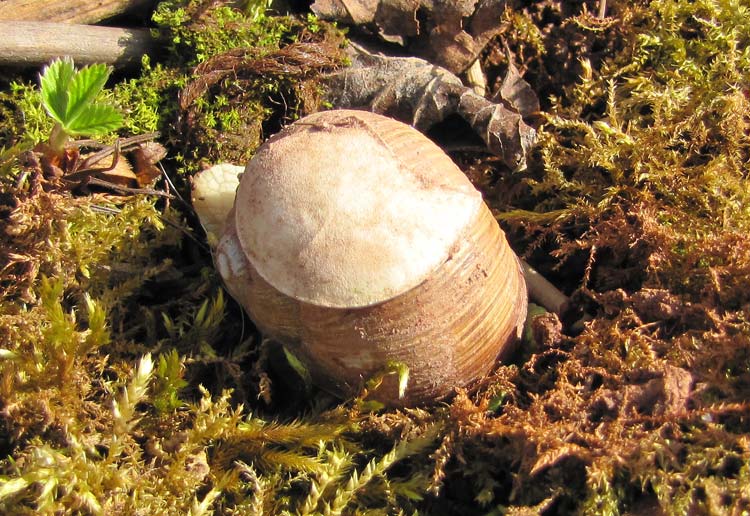 [font=Times New Roman]Die Tiere liegen oberflächlich, mit dem Gehäuse nach unten in einer kleinen Erdgrube, der Deckel weist nach oben. Meist ist etwas Laub darüber, oder das Tier hat sich unter lockeres Moos verkrochen. Manchmal wird das Laub weggeweht, oder im zeitigen Frühjahr pflückt eine Amsel das Moos für den Nestbau. Dann liegen die Tiere frei und überstehen trotzdem noch heftige Frosttemperaturen. Sie sollen bis minus 40 °C aushalten.[/font]
