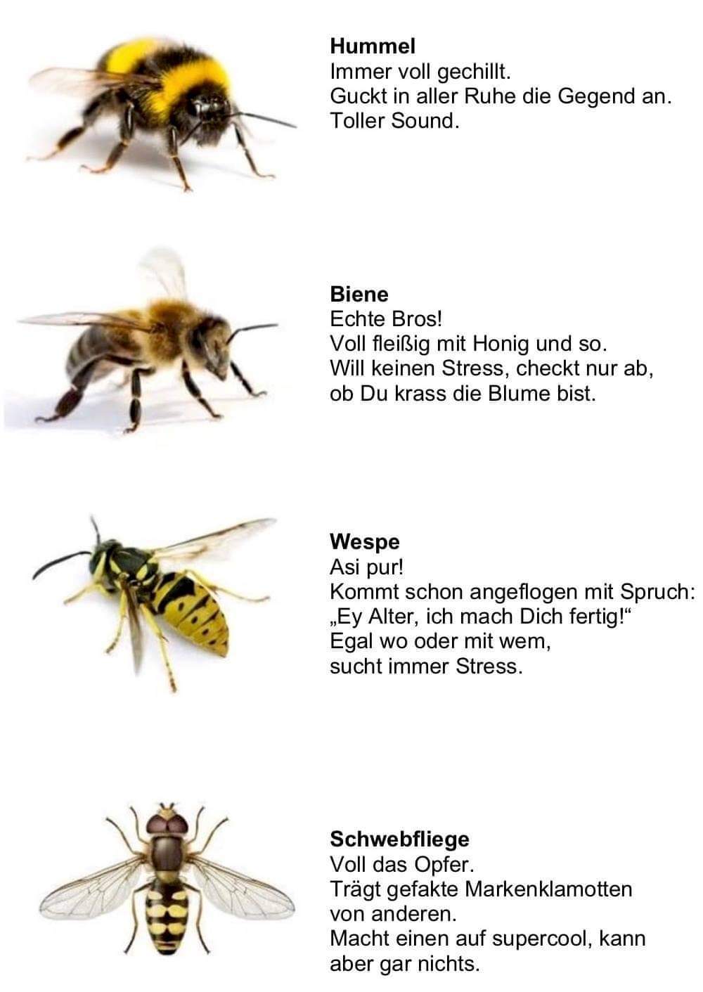 Das man die Schwebefliege verwechselt will ich ja noch mal nix sagen! Aber das man eine Wespe nicht von einer Biene unterscheiden kann ist echt tragisch!