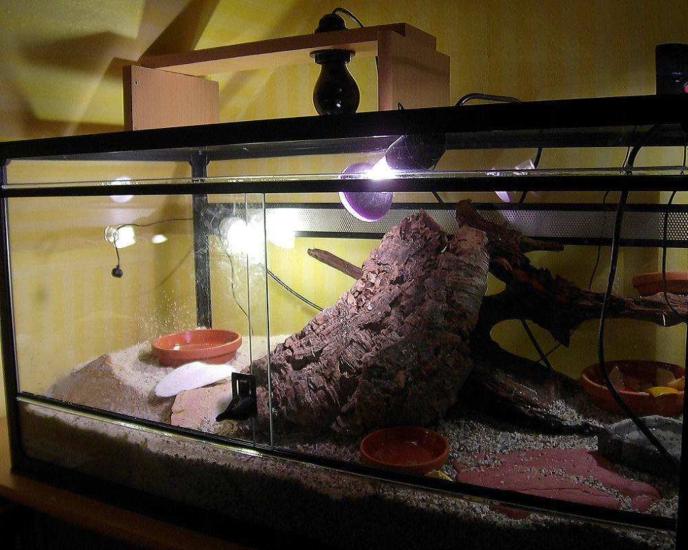 Zur Beleutung nutze ich eine 45 Watt Energiesparlampe und ein 60 Watt Spotlight, welches zusätzlich dank seiner Abwärme das Becken aufheizt.