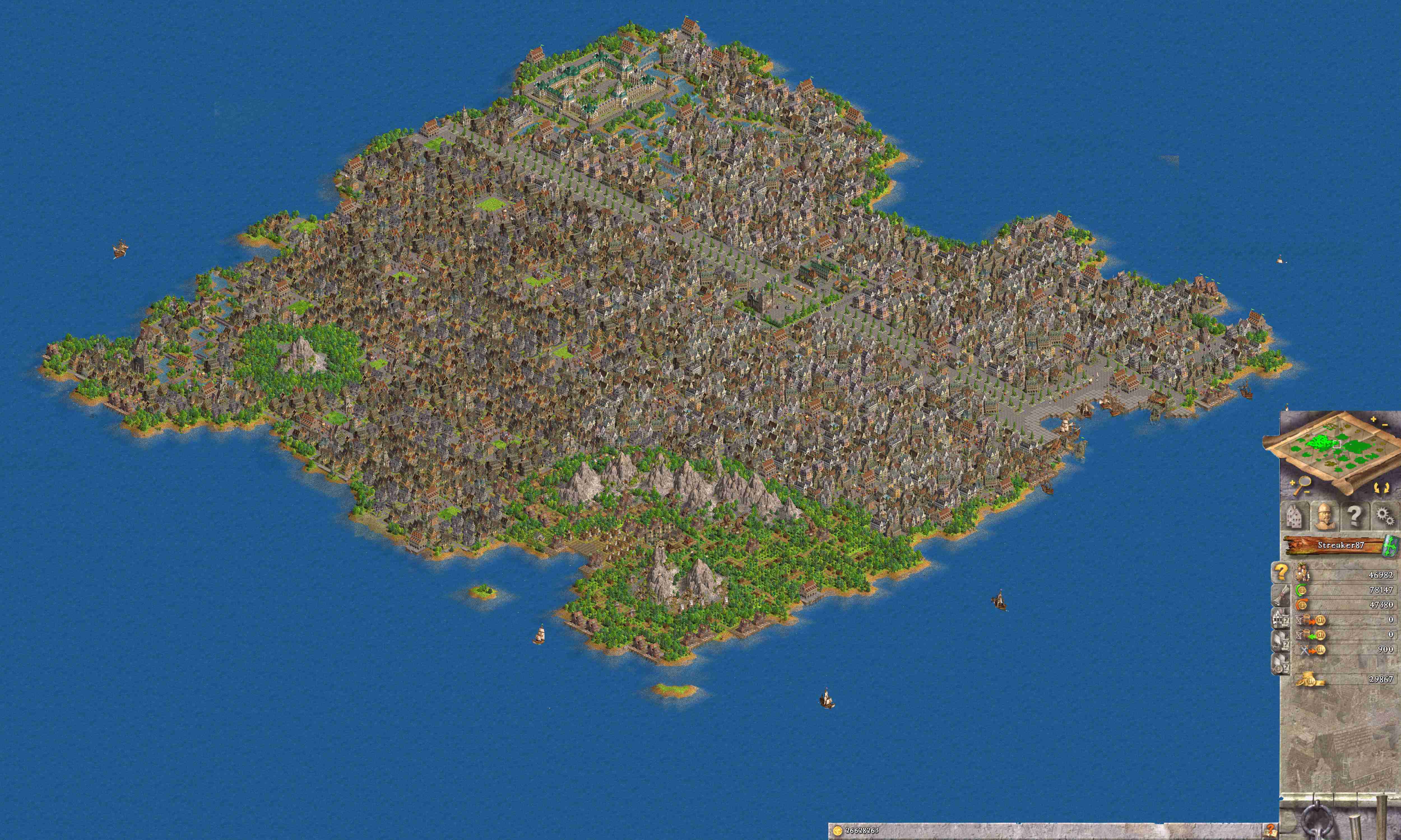 Danke. Mittlerweile sind auch die +55k geknackt (War das Ziel und mehr geht nicht rauf) und es kommt nicht einmal zu EngpĂ€ssen bei der Versorgung. Das hĂ€tte ich nicht gedacht. Die Karte heiĂt "Prunkbaumeister" und findet sich im AddOn unter Endlosspiele.