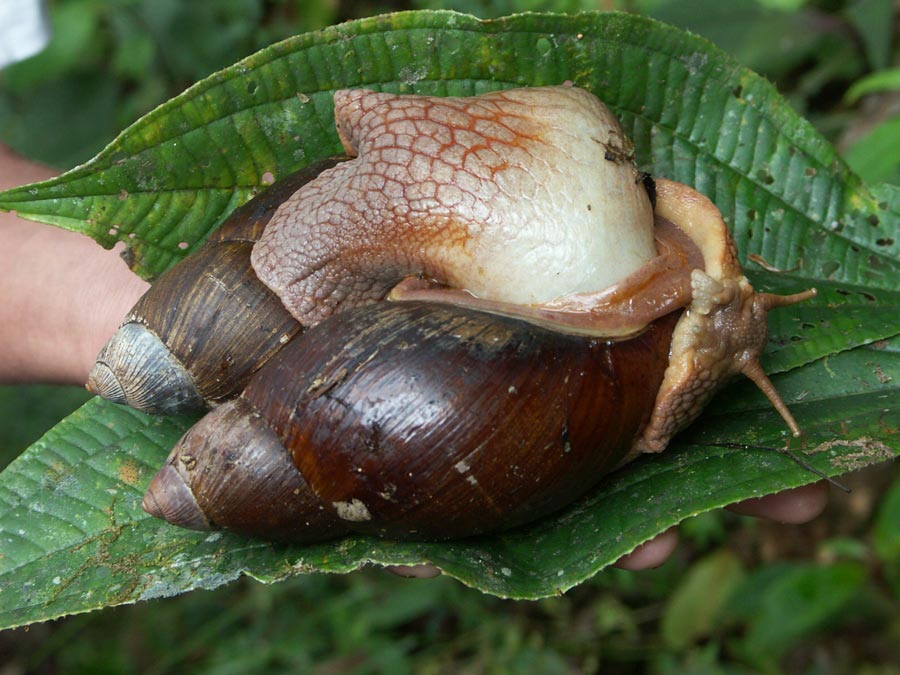 Ich habe weniger Gutes über die Tiere erfahren. Angehängt ist m[font=Times New Roman]ein Bild: Achatina fulica bei der Paarung. 11.10.2007, Peru, Bergnebelwald im oberen Amazonasgebiet. Eingeschleppt in Amazonien, in Ausbreitung begriffen. (Links ist mein Unterarm zu erkennen, rechts unten die Fingerspitzen, als Größenvergleich).[/font]