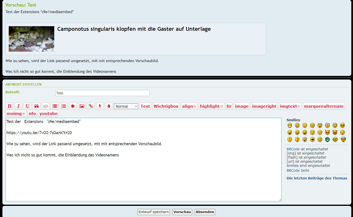Halte es für durchaus legitim das zu berücksichtigen. .... Serafine, Maddio, Sir Joe auch jeder Andere, wenn ihr einen BBCode Skript für die Einbindung von Youtube Videos habt, der es machbar macht, sowohl die jetzige Einbindung wie auch den Link zu verwenden, PN an mich.