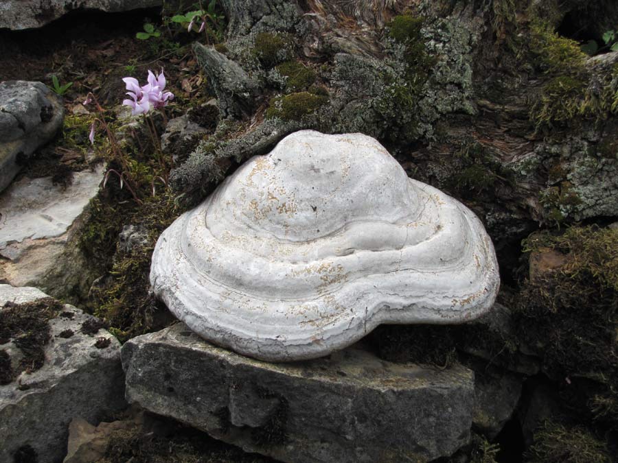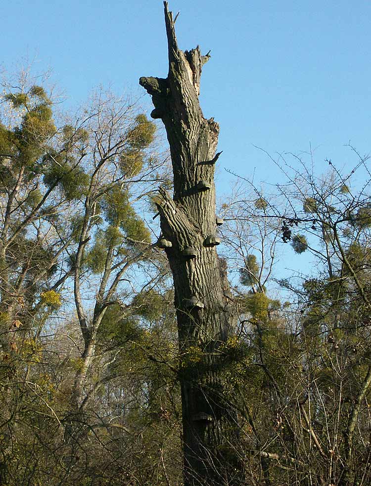 [font=Times New Roman]So habe ich vor vielen Jahren mal zwei Zunderschwämme (Fomes fomentarius) von einem umgestürzten Baum geerntet (Bild 1 zeigt solche Schwämme an einer toten Pappel im Hess. Ried). Die Absicht war, sie gelegentlich als Dekoration zu verwenden, vielleicht am Gartenhaus.[/font]