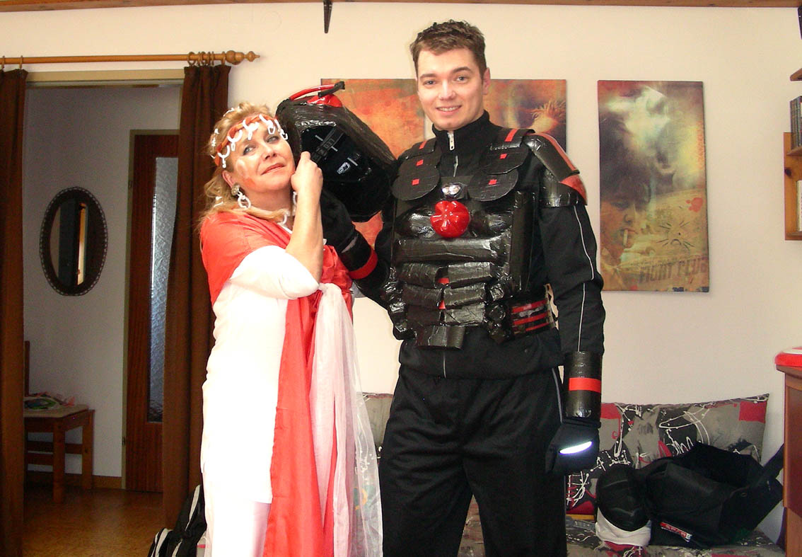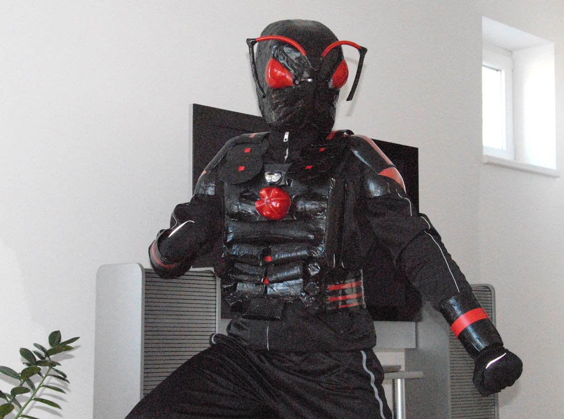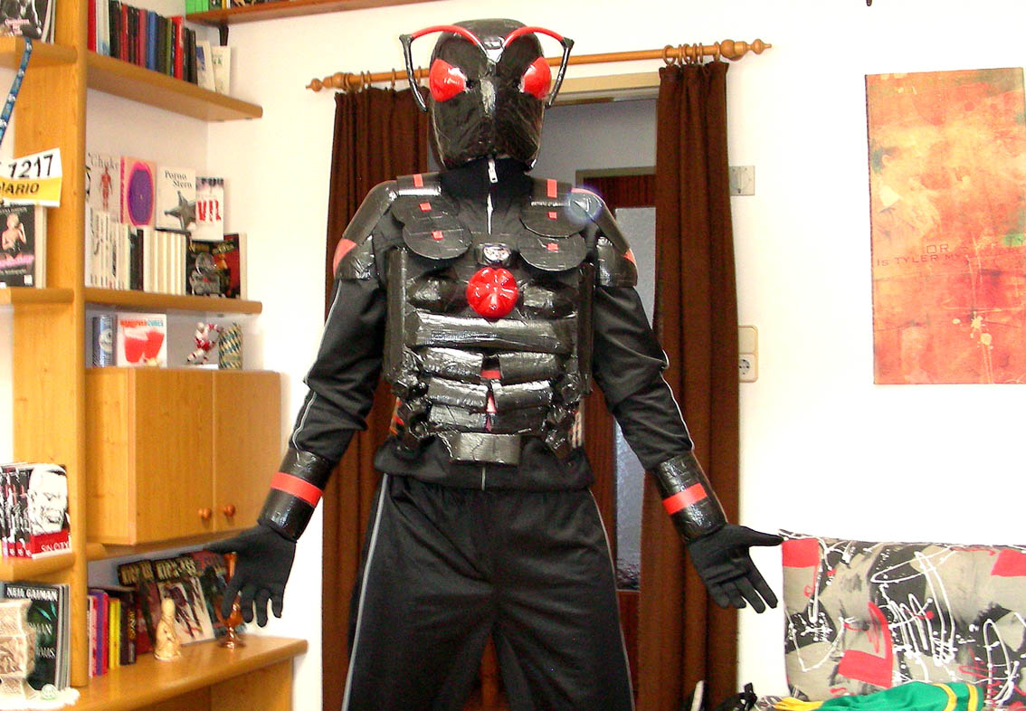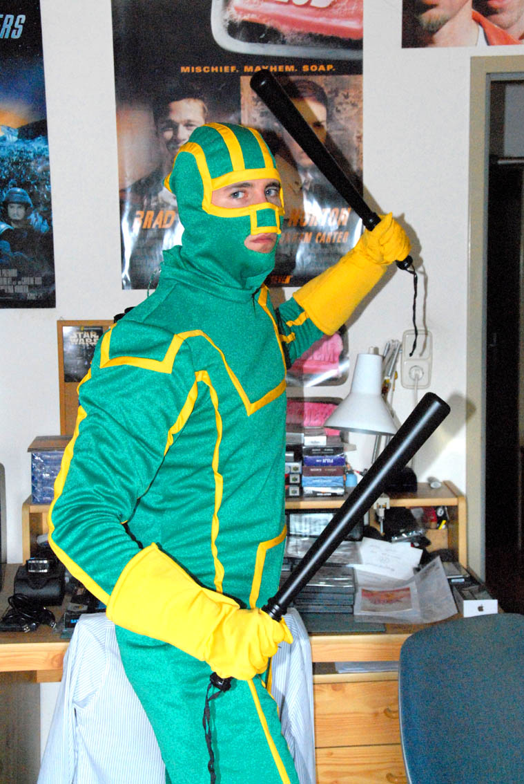 Und zu guter letzt ein Foto meines besten Freundes, denn ich schon seit dem Kindergarten durchgehend kenne als "Kick-Ass" - ich hab ihm bei der Verengung seiner Maske geholfen und seine SchlagknĂĽppelrĂĽckenbefestigung gebaut.