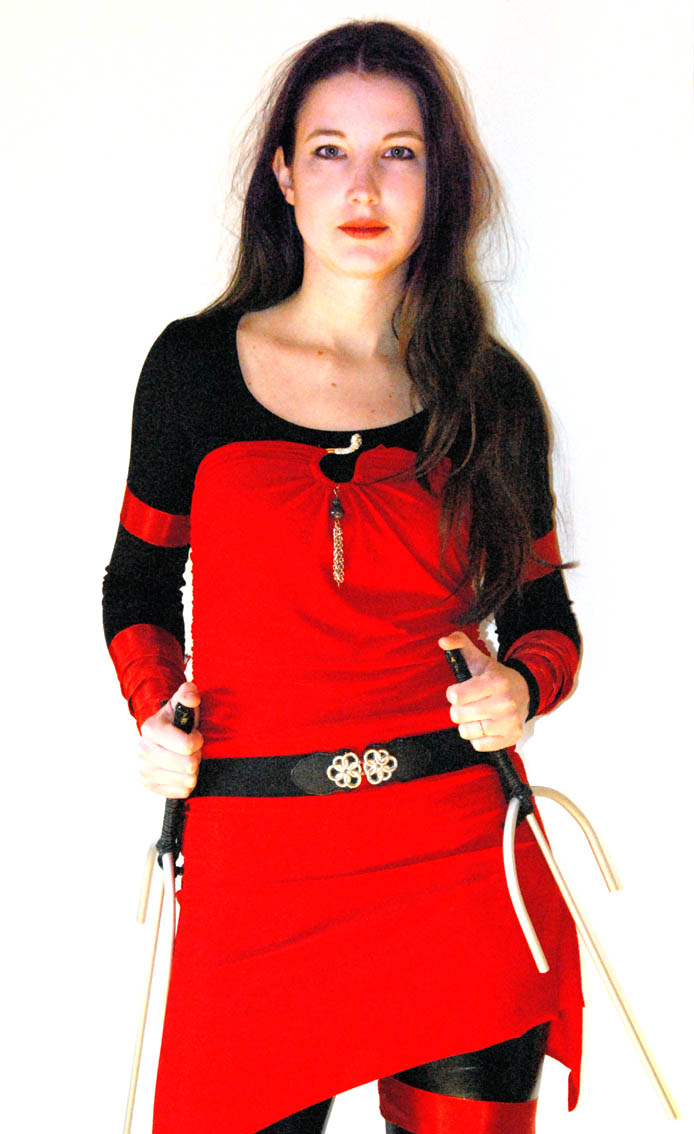 Dann 2 Fotos von meiner Freundin die als Elektra ging - man beachte die Sai´s die ich ihr gebaut hab. Sie hat auch als einziger mit mir ihr Kostüm selber gestaltet - alle anderen haben es gekauft und angepasst sowie etwas modifiziert - nur Captain America - naja - der hätte es wohl besser auch anpassen sollen - hing zu schlaff alles herunter bei ihm *G*
