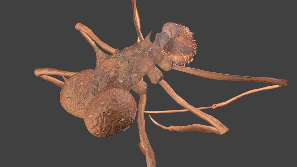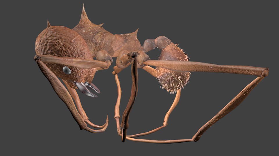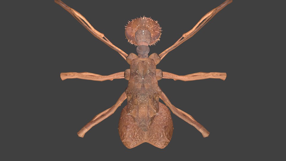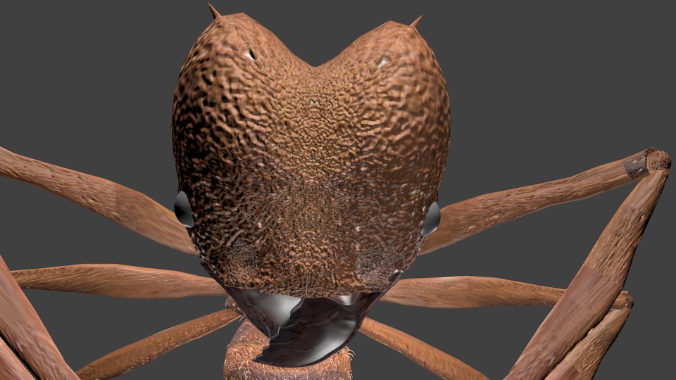 Ich habe mich mehr oder weniger bewusst dafür entschieden, die Körperpartien zu trennen, sprich einzelne Tergitenplatten etc. So könnte man (theoretisch) das Tier beim Animieren realistischer bewegen oder den Körper pulsieren lassen. Allerdings wird es, in meinem Fall, wohl nie dazu kommen, weil mein Rechner für sowas zu schlecht ist