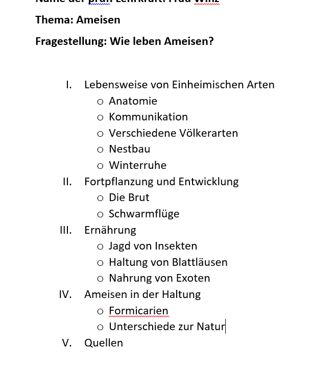 Das Thema "Ameisen", dürft ihr so verwenden? Bei uns musste man immer eine Fragestellung als Thema haben und darauf dann näher eingehen und am Ende diese Frage beantworten.