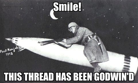 Diffeomorphismus hat geschrieben:solche Leute hätten '33 auch gesagt: "Lasst sie doch marschieren, die wollen doch nur spielen!"