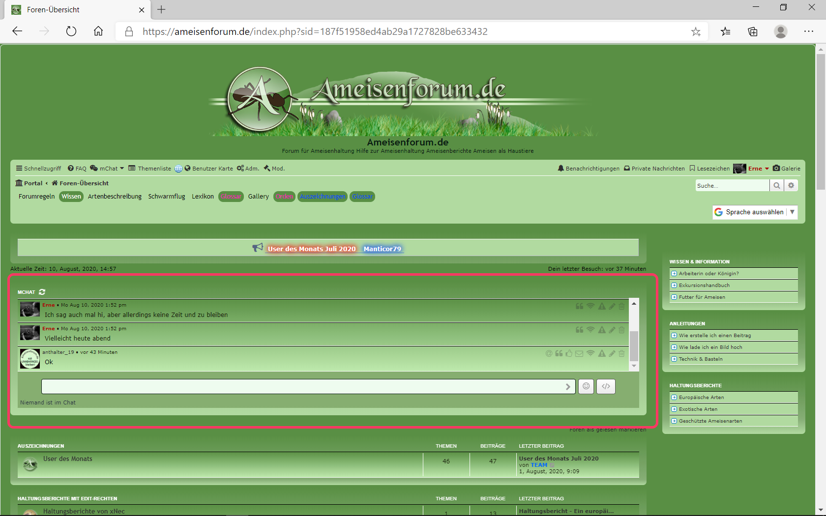 Wer Chats in Ameisenforen mit verfolgt, verfolgt hat, dem ist sicherlich aufgefallen, in der Regel ist kaum Nutzung vorhanden.