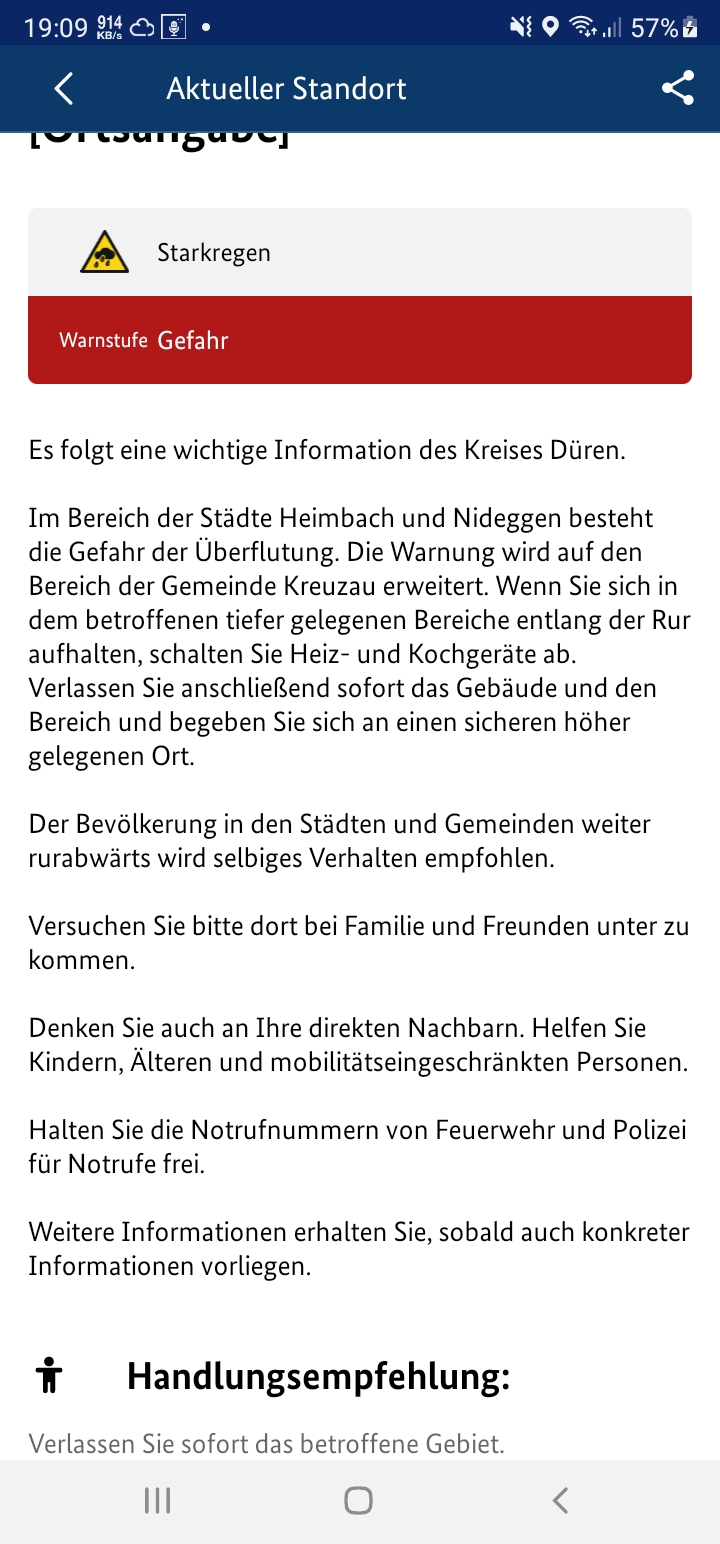 Die Regenfälle sind laut Bericht bis spätestens Sonntag auch endlich zu Ende.Rasenderrolli ↑16. Juli 2021, 14:39Seid 3 Stunden damm bruch Warnung aufgehoben Pegelstand stabil könnte das schlimmste vorbei sein
