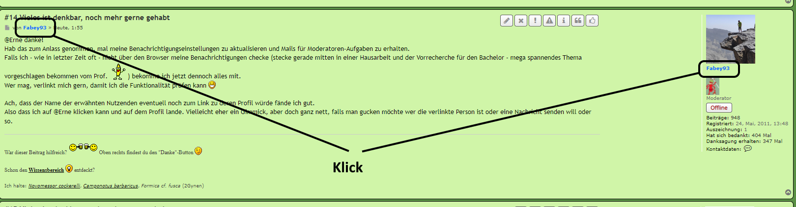 Ach, dass der Name der erwähnten Nutzenden eventuell noch zum Link zu deren Profil würde fände ich gut.
