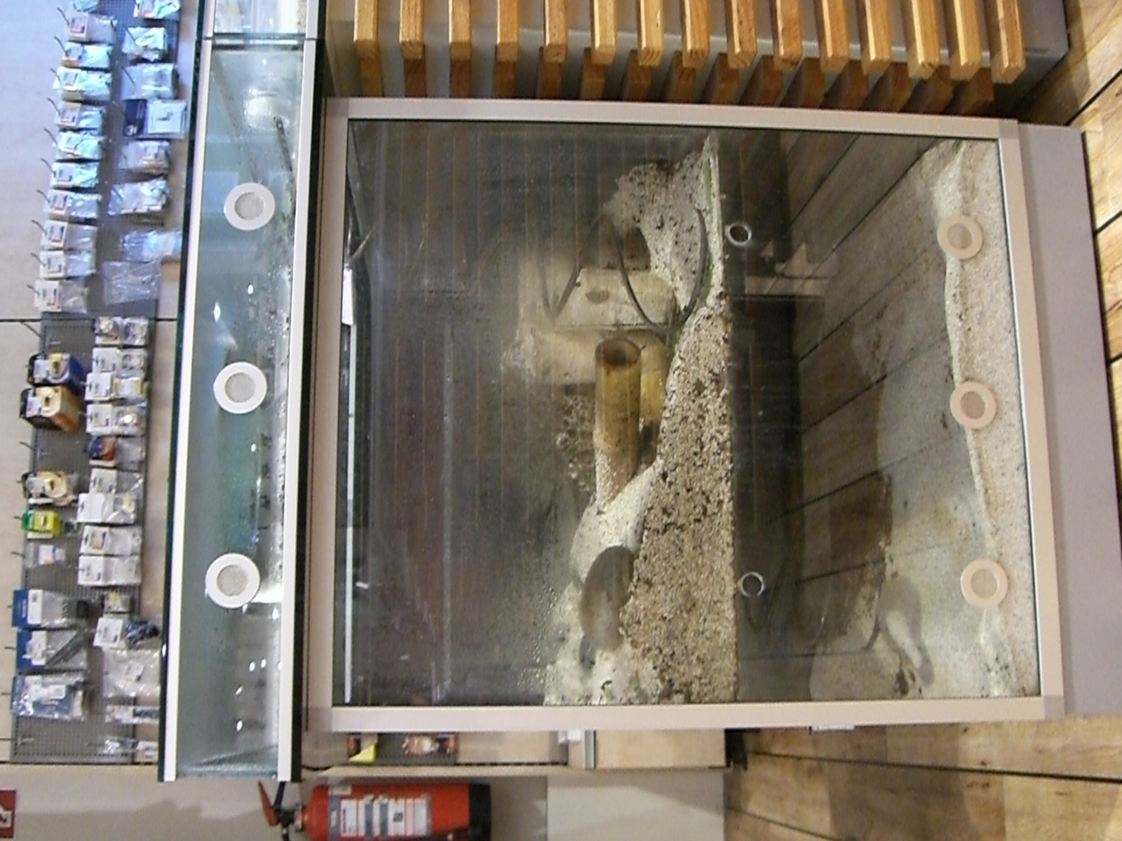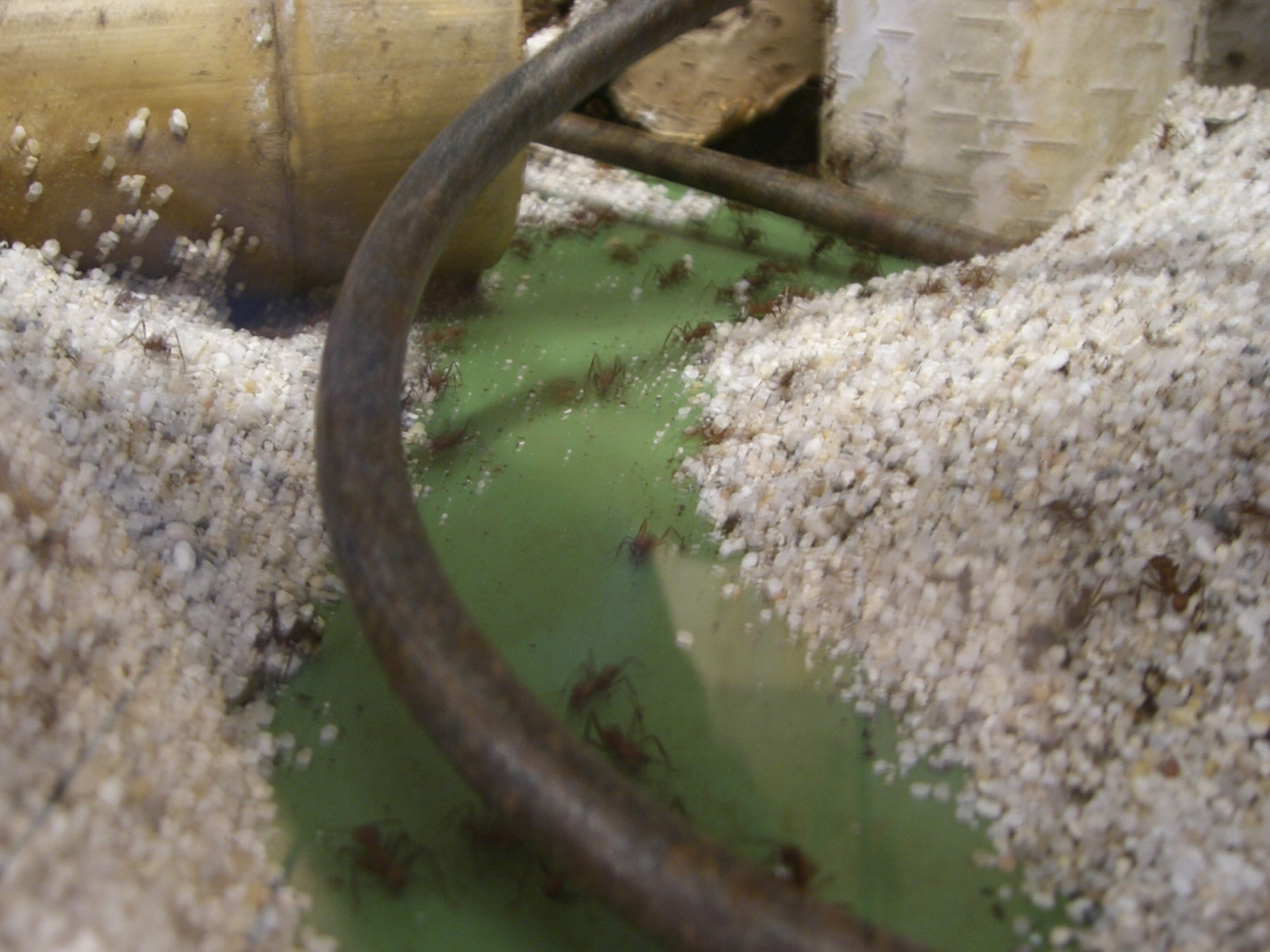 Die Haltungsbedingung finde ich auch nicht so toll, da die tiere nur einen kleinen Bereich mit Blättern haben, der Rest ist nur Sand und Stein. Und das Formicarium könnte auch mal wieder ne Wäsche gebrauchen.....