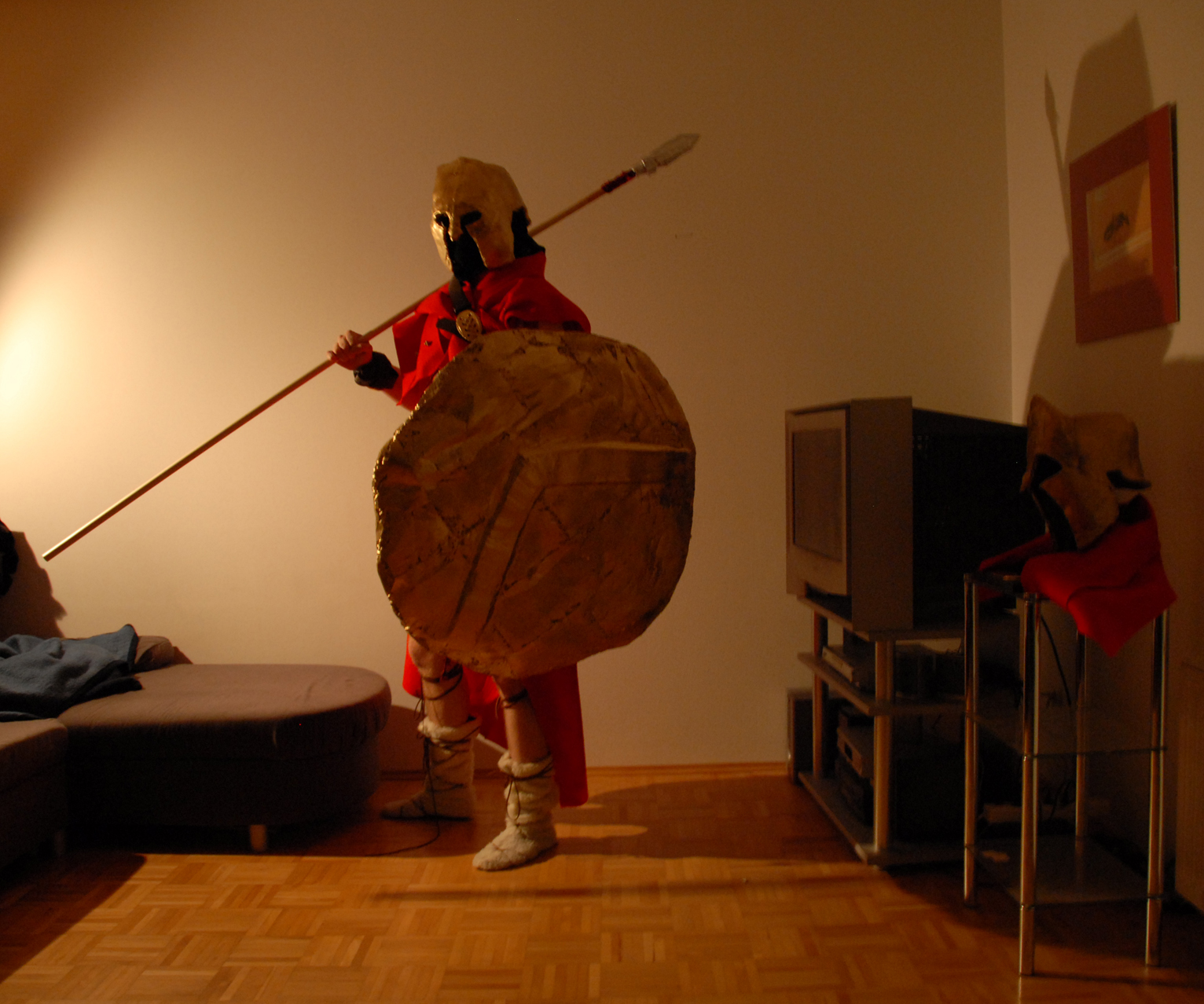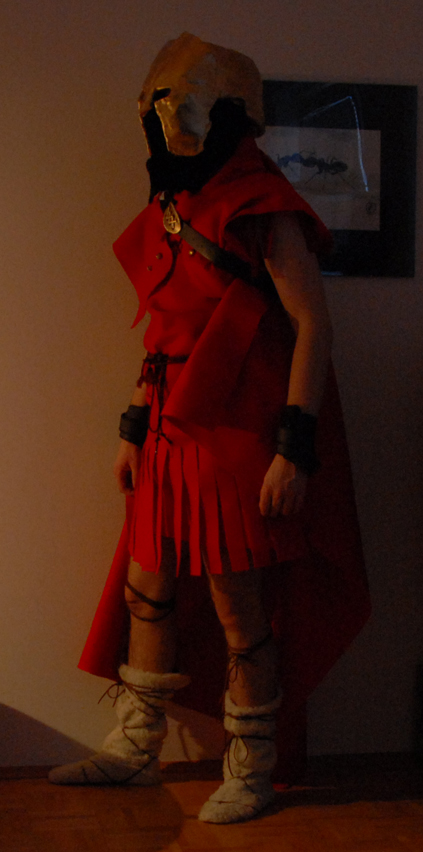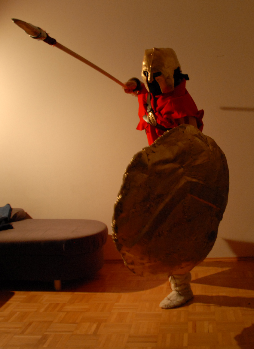 Ich war heuer als Spartaner verkleidet - hab alles selbst gemacht - ĂĽber Unterkleidung - StoffrĂĽstung - Umhang - Rock - Flappenrock - Schild - Speer und vor allem den aufwendigen Helm (hatte unterhalb eine Sturmmaske auf damit mich keiner erkennt).