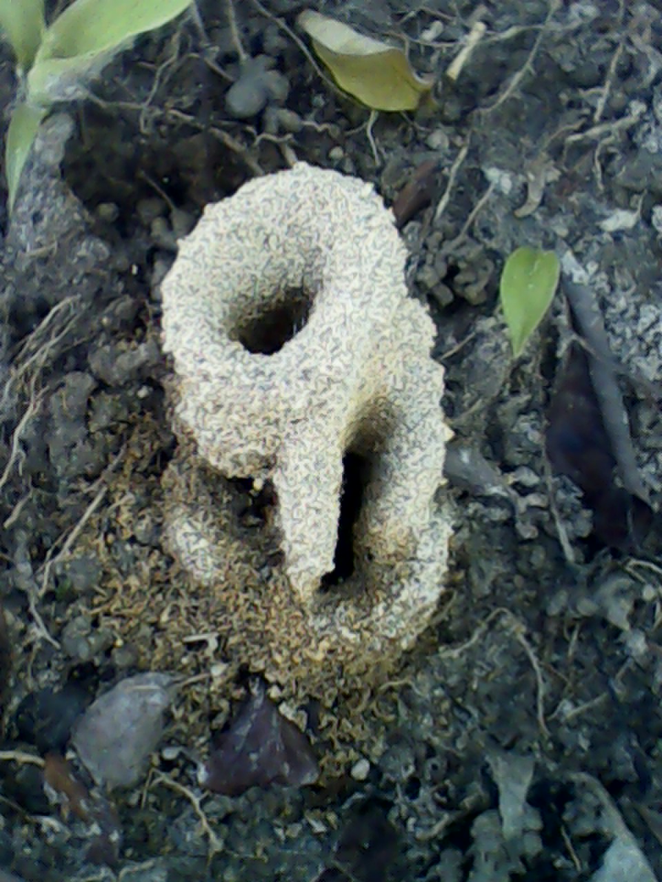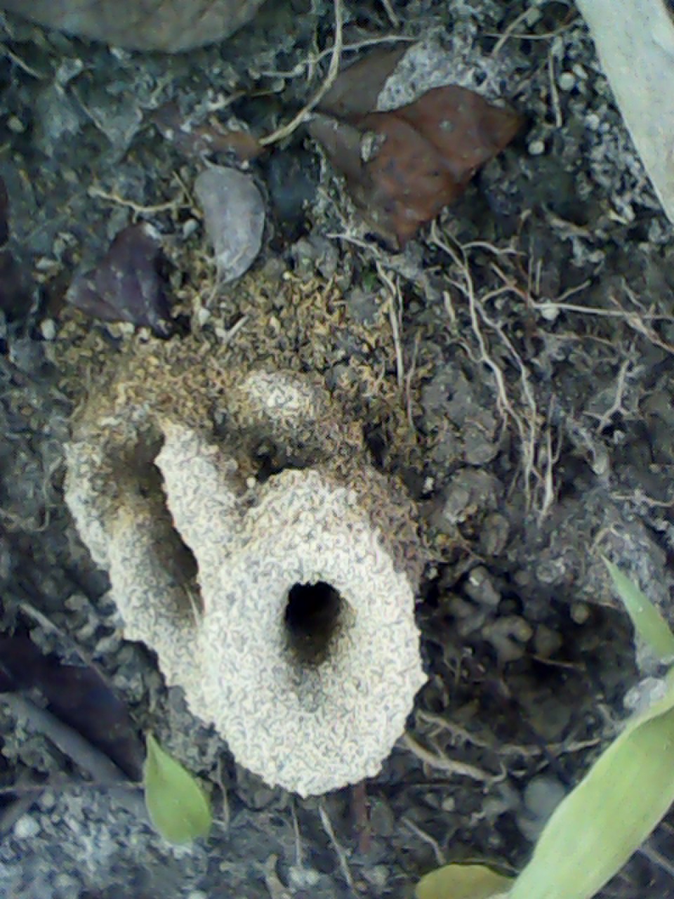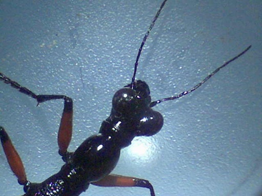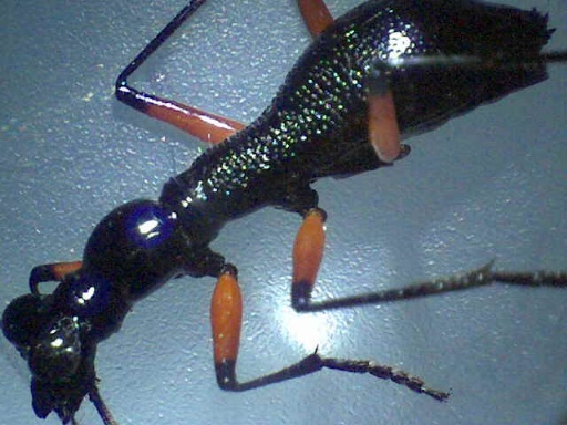 Plötzlich prescht ein 2-3cm großes Insekt über den Termitenhaufen und greift scheinbar dort straßierende kleine Ameisen an, nickte jedenfalls mehrfach die