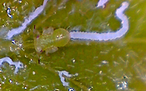 [font=Times New Roman]Mal sehen, was meine Camponotus zu einem abgeschnittenen Trieb mit solchen Schläuchen sagen. Nun ja, mäßiges Interesse; irgendwie ist die Wachs-Honigtau-Matsche wohl doch nicht das Wahre. Man sieht auch kaum je eine Ameise an einem so befallenen Weißdorn.[/font]
