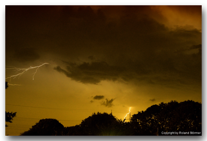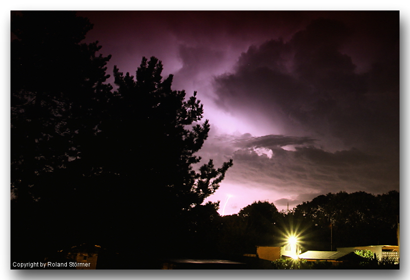 ) aber der Grusel wandelte sich schnell in Faszination um.Ich hatte auch versucht ein paar Fotos zu schieĂen, aber obwohl die Wolken visuell sehr hell geleuchtet, ja teilweise gar geblendet haben, war auf den Langzeitbelichtungen kaum was zu sehen