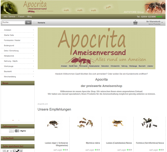 wie Euch vielleicht aufgefallen ist, wurde in den letzten Wochen das Sortiment von Antstore etwas umgestellt. Grund dafür ist die Neueröffnung von Apocrita unter neuer Leitung. Meiner Leitung.