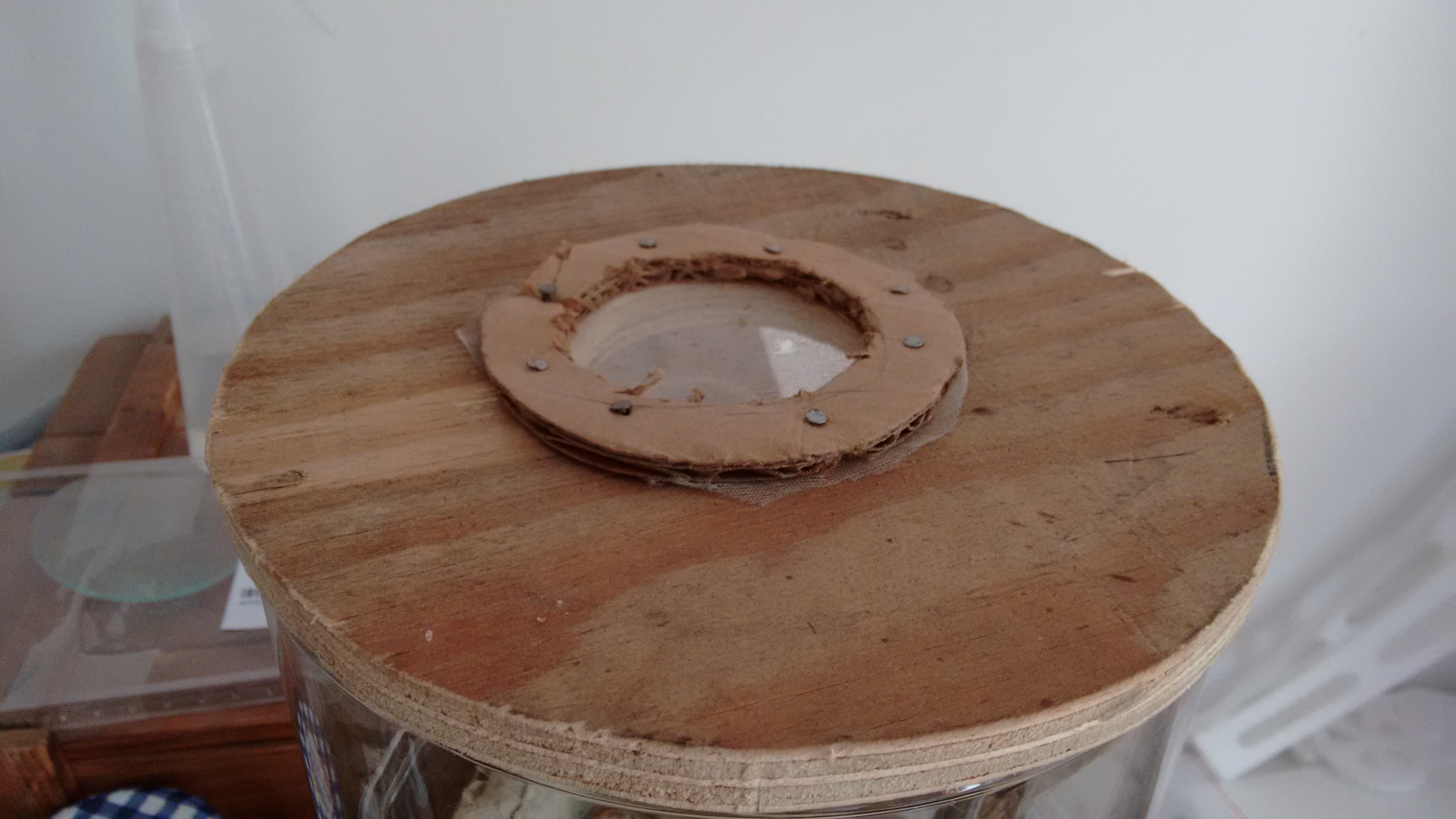 Also machte ich mit einer KreissÀge(glaub das nennt man so) ein Loch in den Deckel.