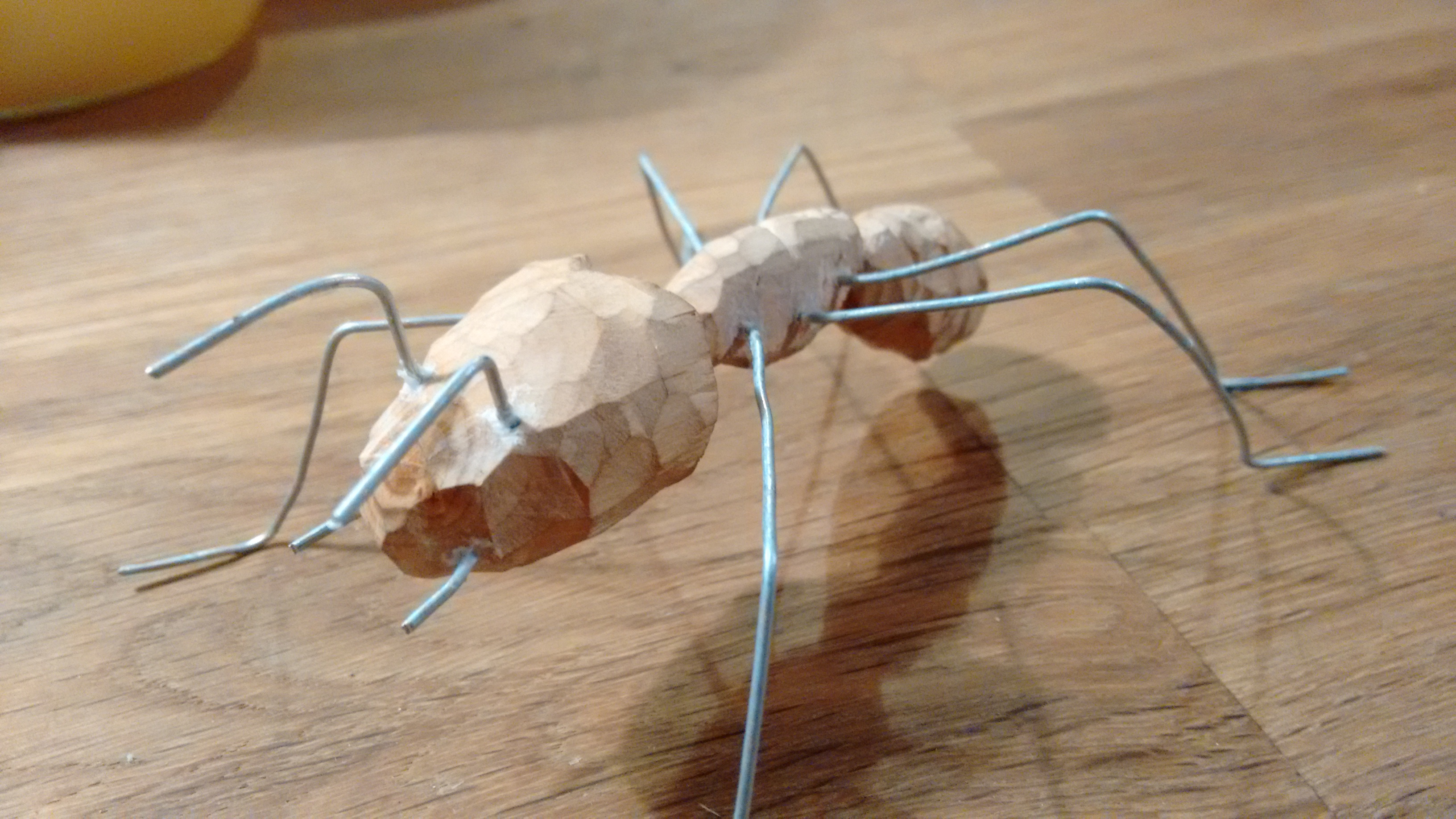 Diese hier besteht aus Holz,Draht und etwas Leim, auĂerdem ist sie keineswegs so aktiv wie eine normale Ameise und auch nicht von der selben GröĂenordnung.