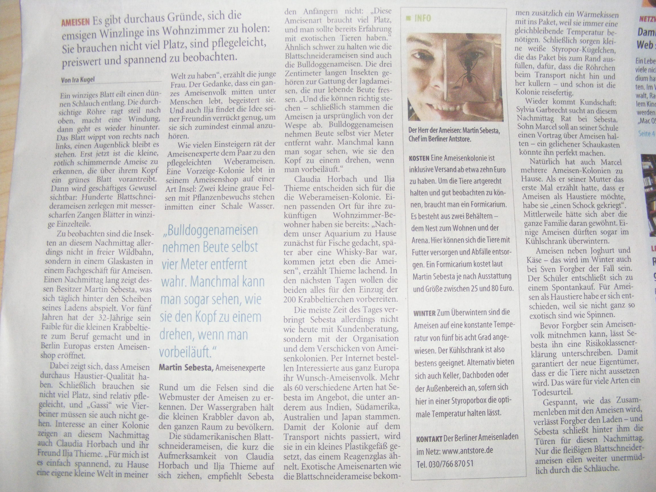 ich habe einen Artikel ĂŒber die Ameisenhaltung gelesen und natĂŒrlich wurde darin der Antstore besucht und Martin Sebesta befragt.