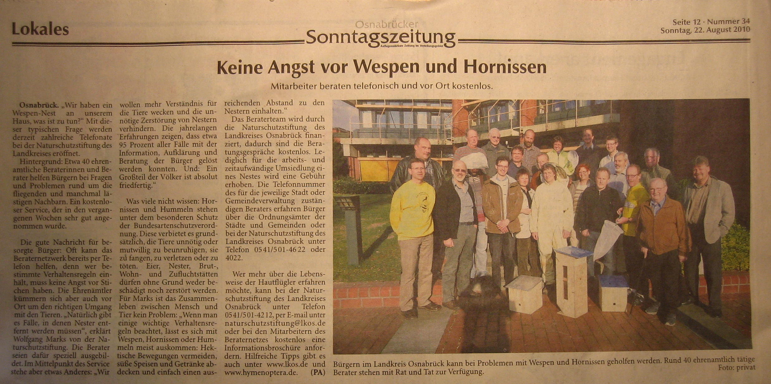 #1 "Keine Angst vor Wespen und Hornissen" - OsnabrĂĽcker Sonntagzeitung