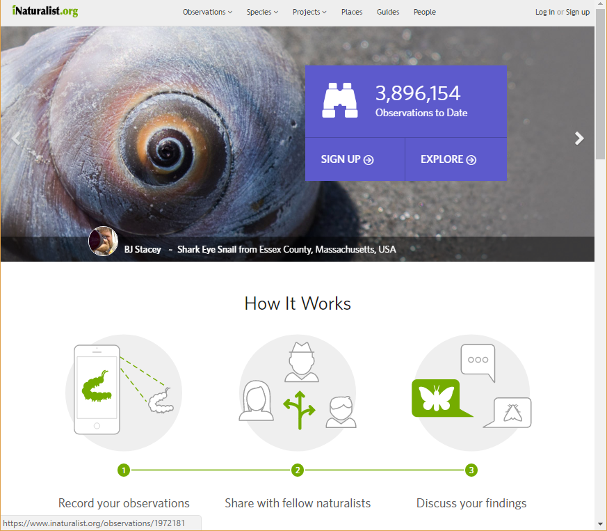 Dort kann man jegliche Beobachtungen von Tieren und Pflanzen melden und die Funde werden dann in einer Karte eingezeichnet. Mittlerweile sind fast 4 Millionen Beobachtungen in der Seite vorhanden. Man kann die Beobachtungen natĂĽrlich auch durchsuchen z. B. nach Bestimmten Tieren wie Ameisen..