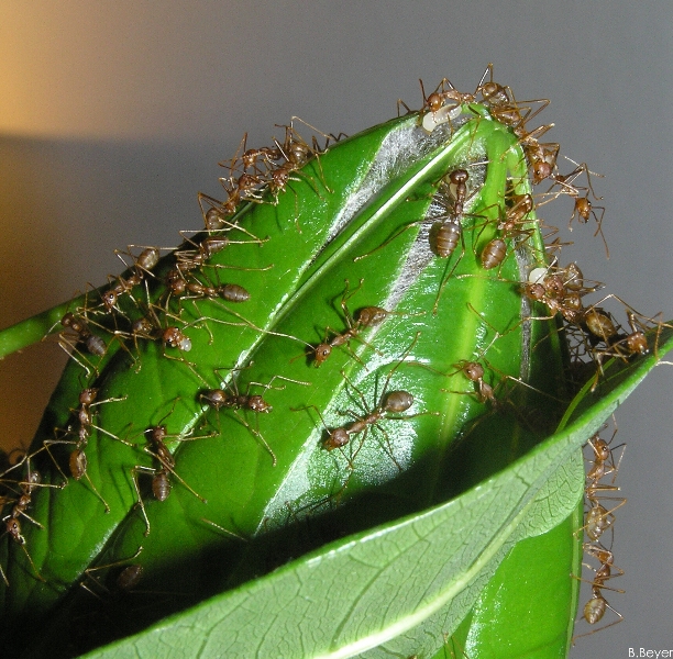 Und wie versprochen, ein paar Fotos aus den verschiedenen Nestbauaktionen, die ich im Laufe der Jahre bereits miterleben durfte. Ich denke, dass Kommentare hier nicht mehr nötig sind, die Bilder sprechen eine eindeutige Sprache... ich kann nur sagen, dass ich auch heute noch völlig hin und weg von meinen Oecophylla bin :spin2:
