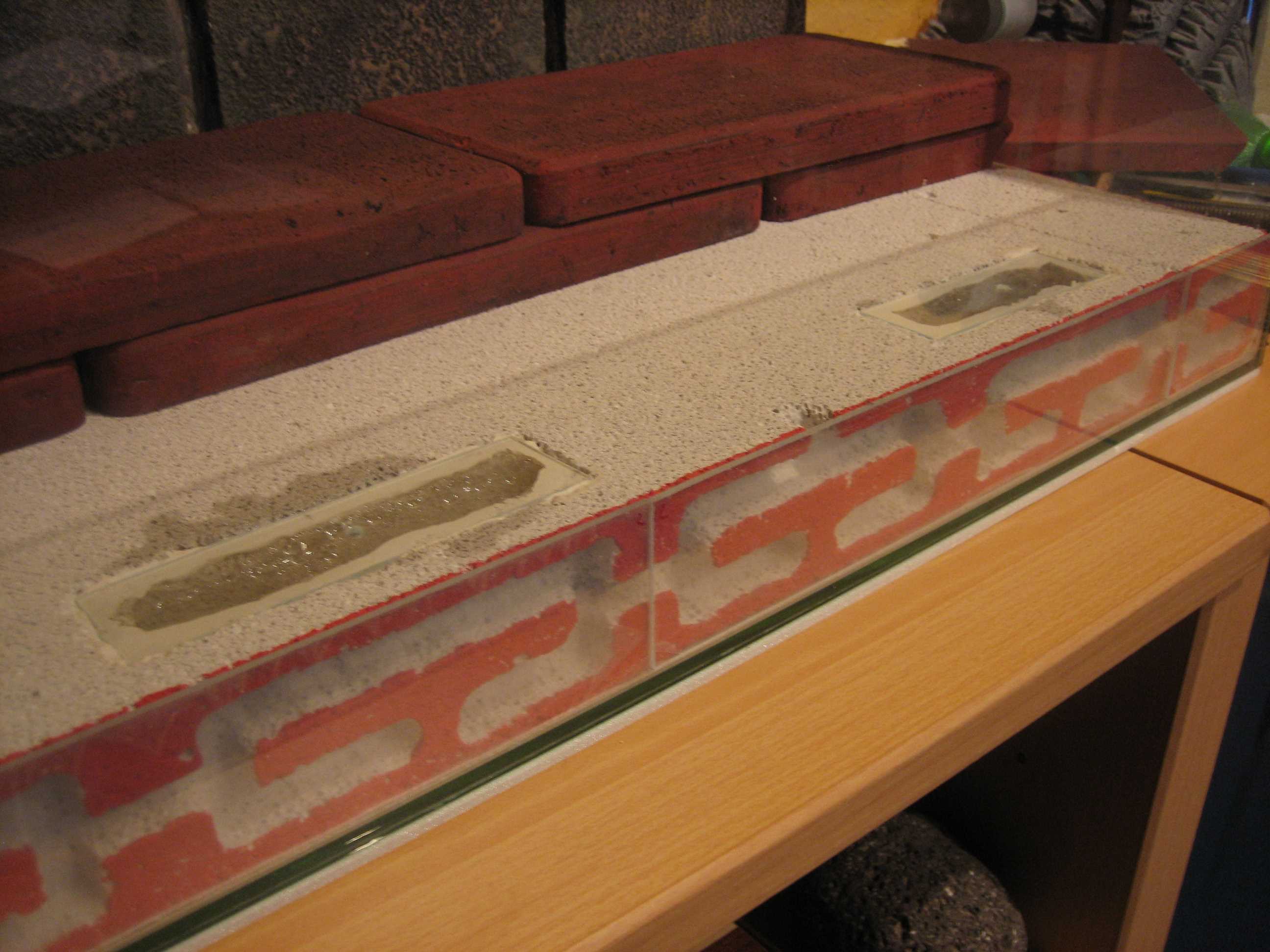 Ja, in die Backstein-Fugen kommt noch "Sand" oder Unkraut. Die Spachtelmasse von dem Bordstein muss erst trocknen, bevor ich das Becken mit Sand auffĂŒllen kann.