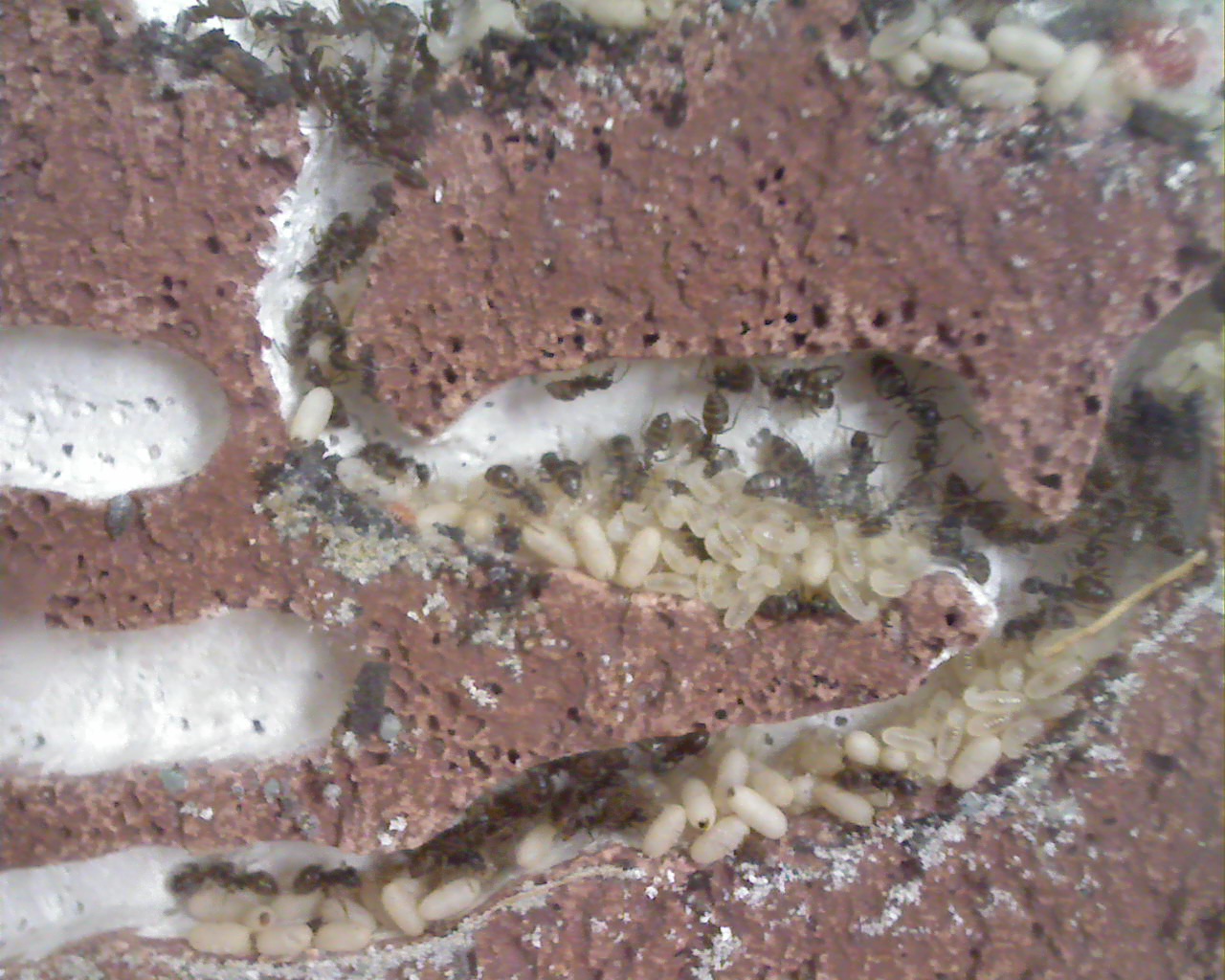 Joar, als ich dann den Karton hochgehoben habe, liefen schon 3-4 Ameisen auf dem Boden rum. "Oh oh, von wo kommt ihr den gelaufen" dachte ich mir da nur.oO(Dieser Satz ist grammatikalisch falsch, ich weiss. Aber dieser Satz ist ein Zitat meines damaligen tchechischen Berufsschullehrers und muss daher so sein). Diesen laut ausgesprochenen Satz hat auch meine Freundin im Nachbarzimmer gehört und auch schon angefangen zu stöhnen und das schlimmste befürchtet. Sie ist ein wenig ameisengeschädigt und duldet dieses Hobby nur.